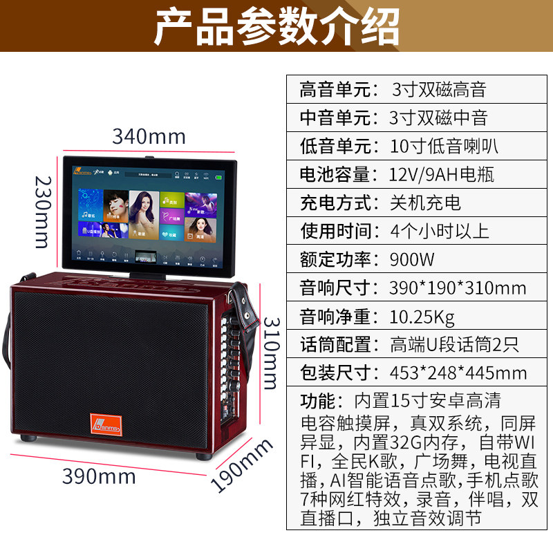 Danmark new K910A outdoor karaoke portable K song jukebox family KTV audio set high power bass square dance video Bluetooth speaker with display screen