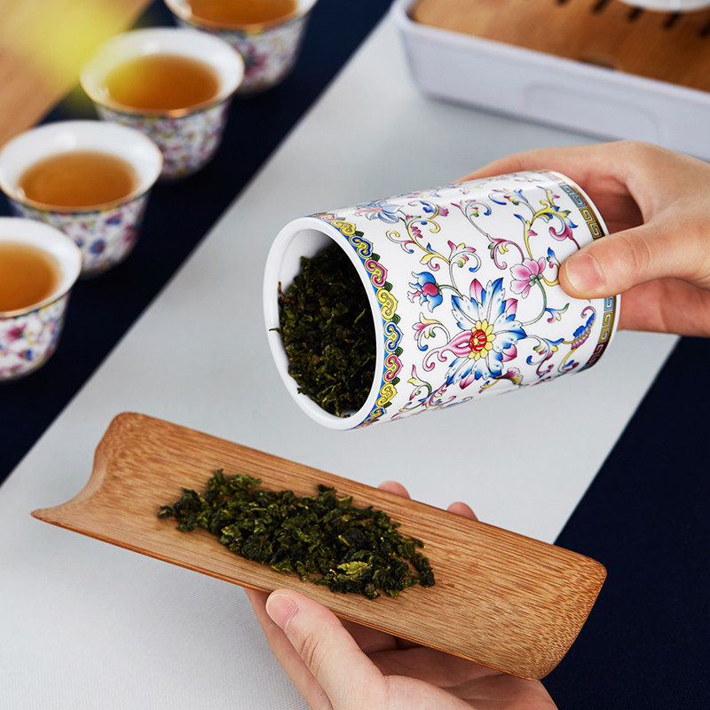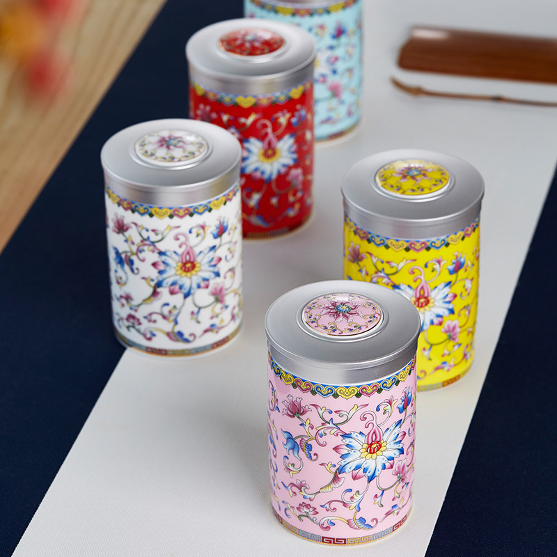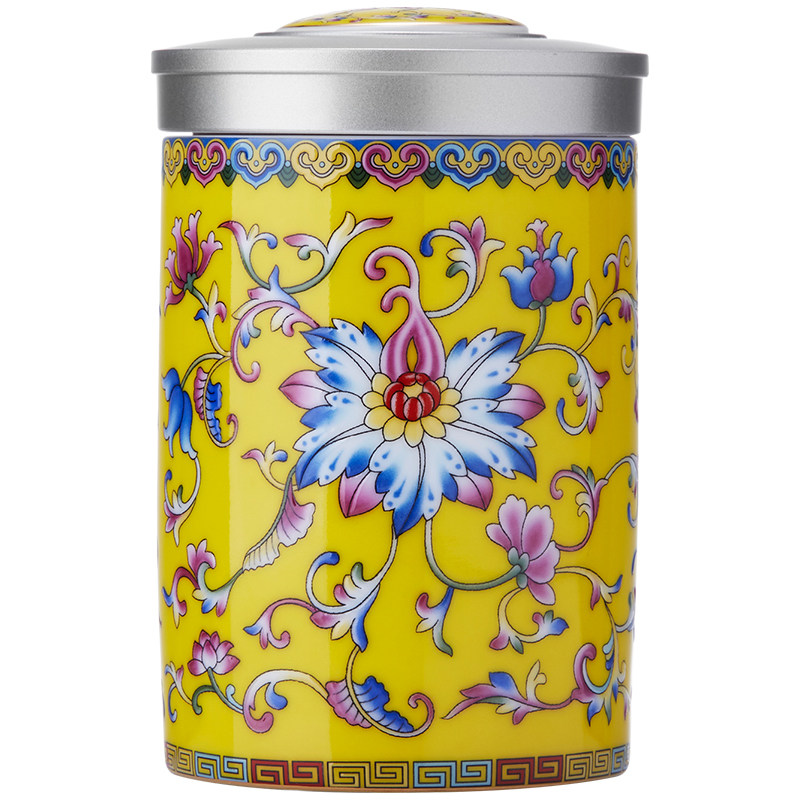 Green Changming enamel color tea pot small household storage tank Pu'er tea box sealed portable ceramic tea pot