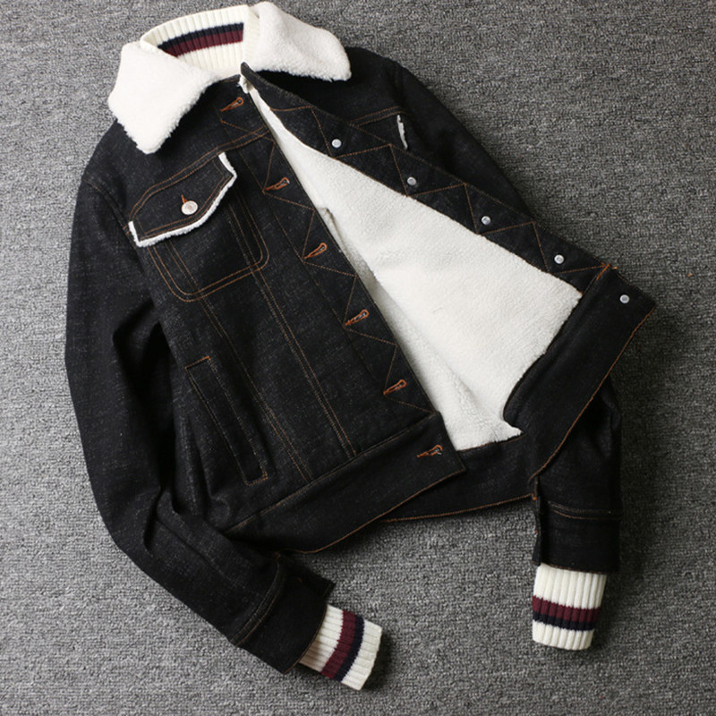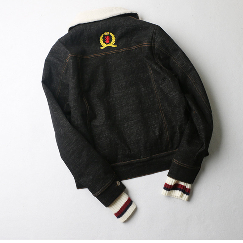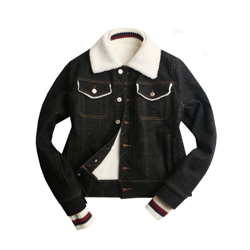 Star Jiang Shuying same style black denim lamb wool coat women's winter Korean version loose tide ins women's short bf style