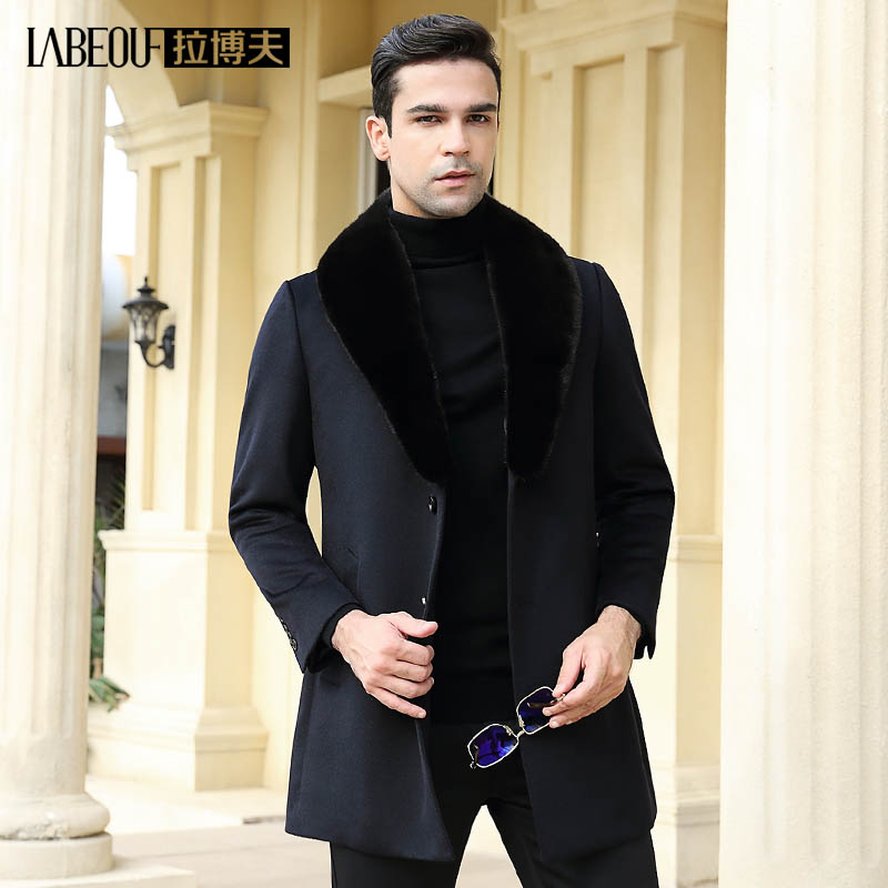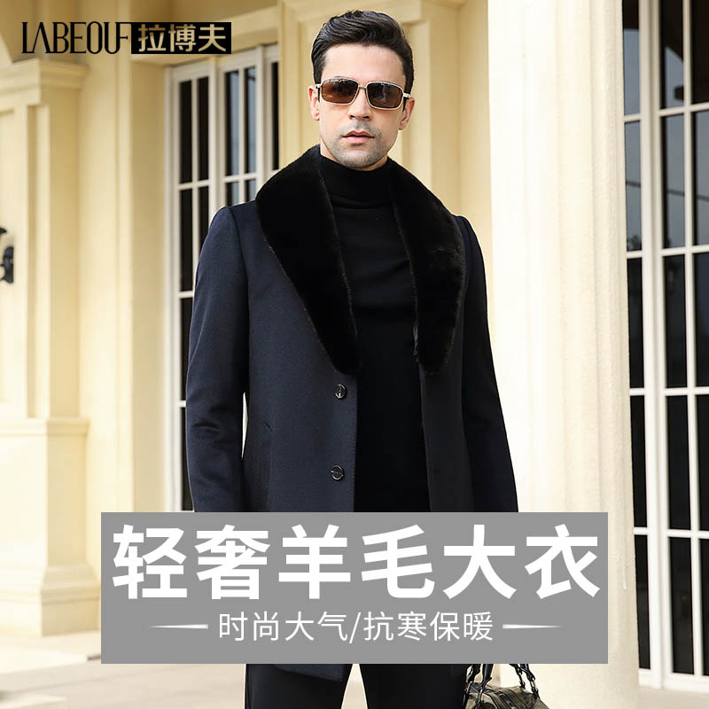 Labov Grand coat men's medium long version of wool What is easy for the middle-aged man to handle a comfortable man's wool jacket