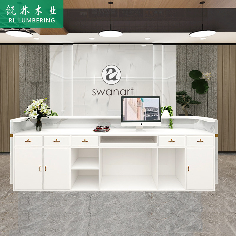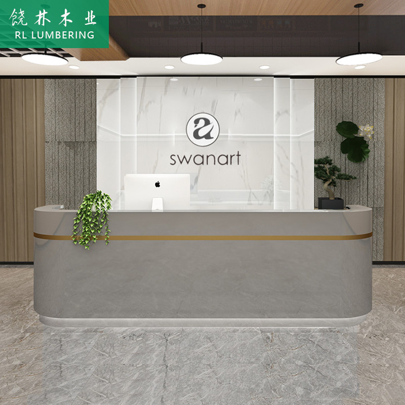 Simple modern cash register beauty salon small shop curved bar hotel company front desk reception counter custom made