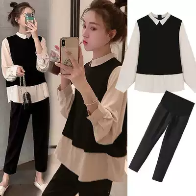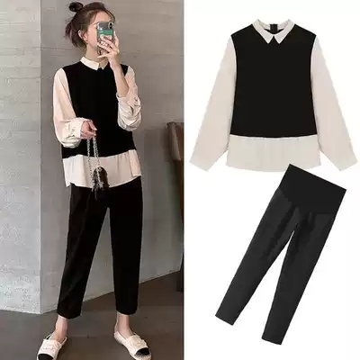 Foreign maternity dress autumn suit fashion autumn and winter New Large size loose tide mother model outer wear two-piece suit