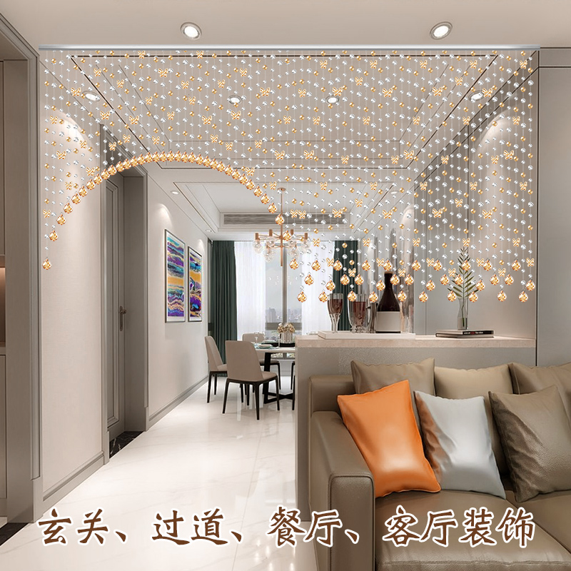 Beaded curtain door curtain crystal butterfly aisle decoration partition curtain light luxury home living room bedroom toilet free hole hanging curtain