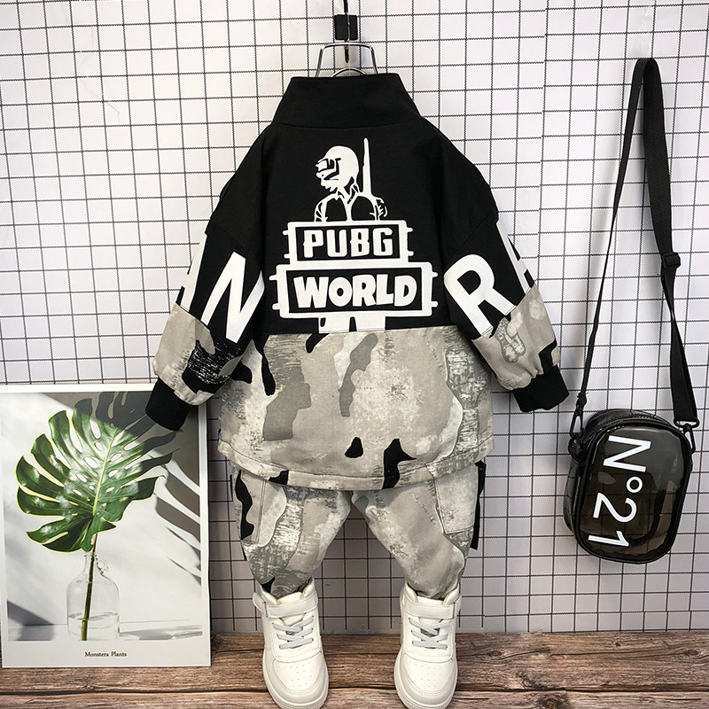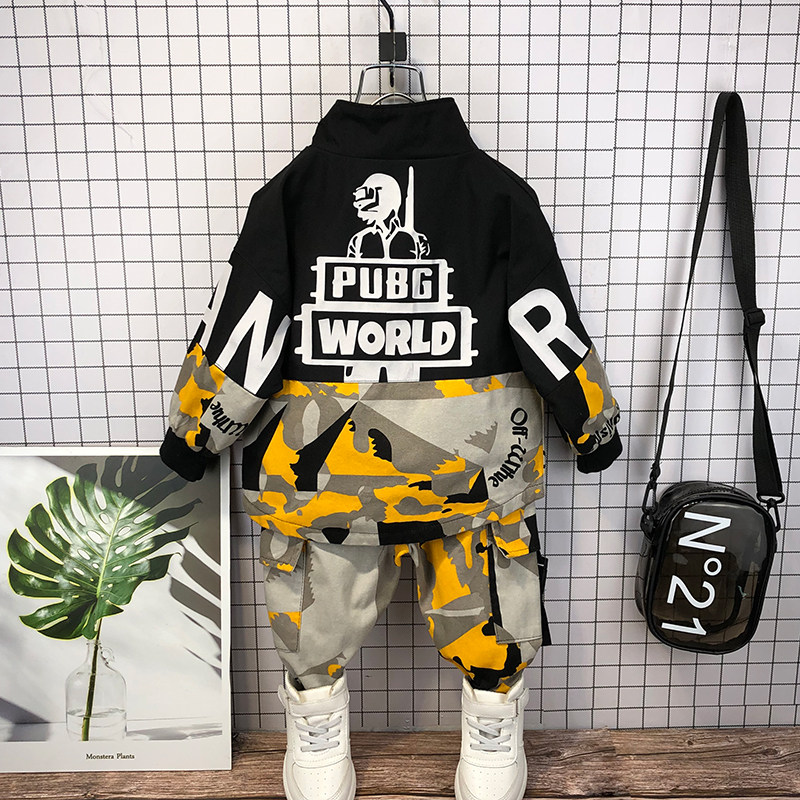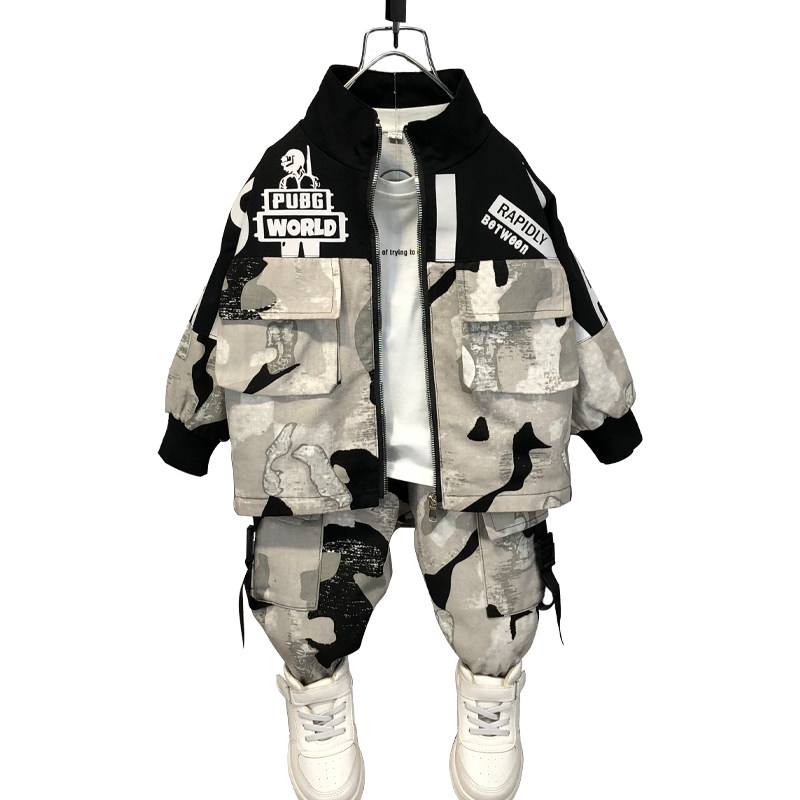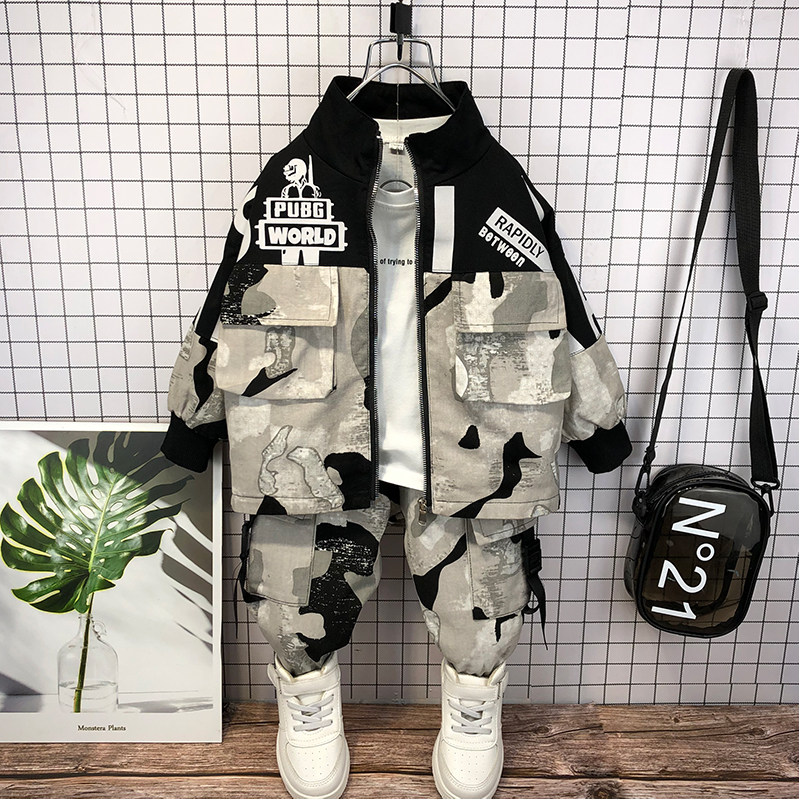 Boy Spring clothes suit 2022 new children jacket children's spring and autumn clothes camouflavored Korean version trendy internet red child clothing wave