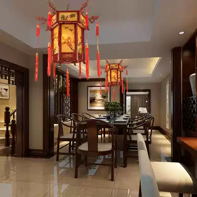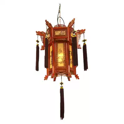 Chinese antique wood carving red lantern decoration wooden rotating horse lantern solid wood palace lantern New Year chandelier