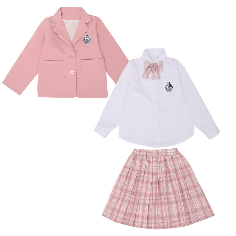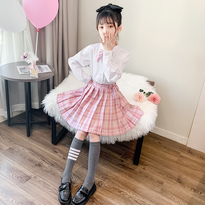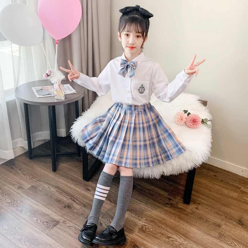 Girls dress spring and autumn gk pleated skirt shirt suit three-piece net red children's suit college style jk uniform tide
