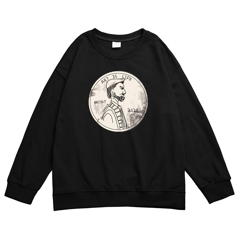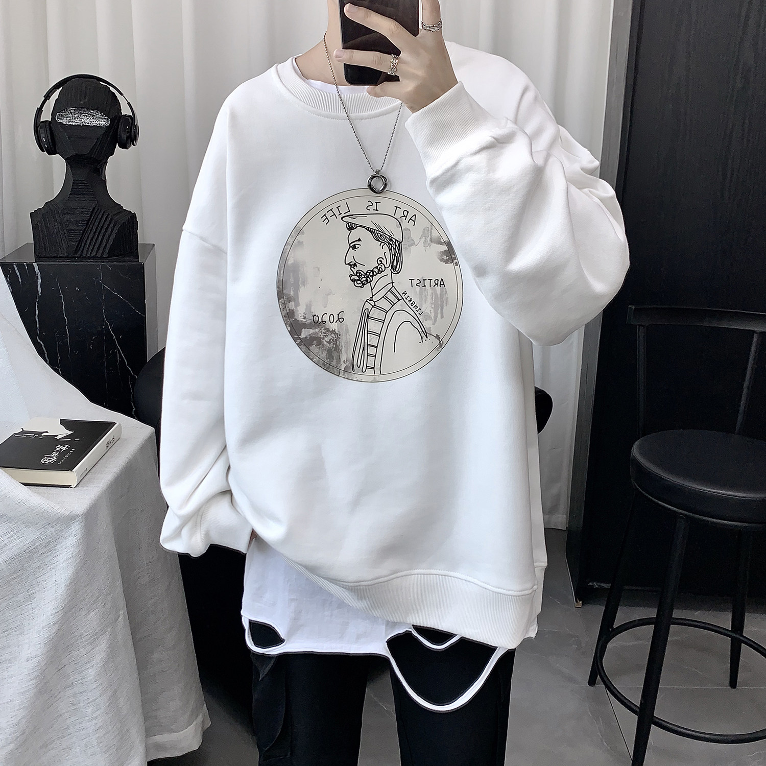 2020 new couple's wear autumn couple's version round neck thick cotton T men's trendy ins loose trend all-match clothes