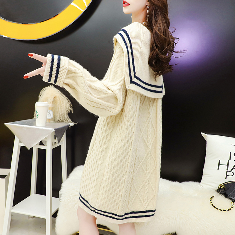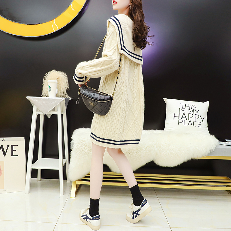 Mid-length navy collar pullover sweater group 2020 women's autumn and winter loose outerwear forest lazy style all-match knitwear