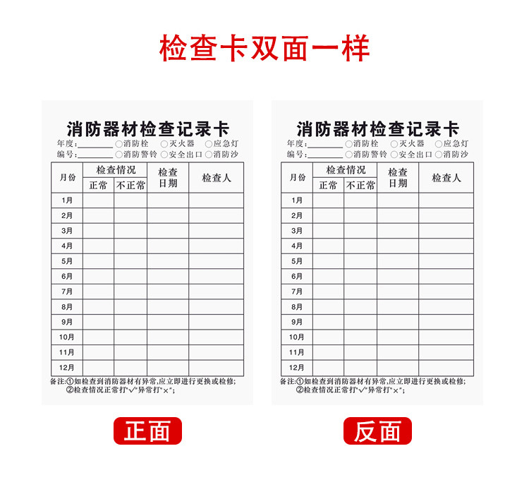 Fire equipment inspection record card (double-sided cable tie) Universal fire extinguisher inspection card (double-sided cable tie) Fire hydrant inspection record card (double-sided cable tie) Fire equipment inspection card (double-sided cable tie) Fire equipment inspection card (double-sided cable tie) Universal fire equipment spot check form (double-sided cable tie) Ordinary card sleeve 10 Waterproof card sleeve 10 Ordinary card sleeve 50 Waterproof card sleeve 50 5 fire extinguisher use Sticker 5 fire hydrant use Sticker 5 fire extinguisher placement point Sticker 5 fire extinguisher placement point Sticker 20 fire extinguisher use sticker 20 pieces of hydrant use sticker sample customized (please contact customer service)
