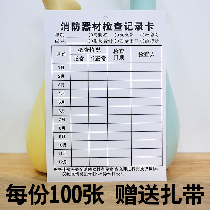 Fire equipment maintenance record card fire hydrant fire extinguisher inspection card set monthly spot inspection maintenance inspection form registration