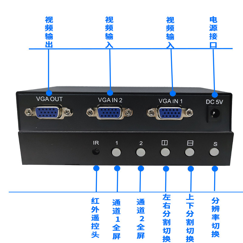 VGA screen splitter 2ch industrial camera two computer split screen PC signal image synthesizer production line dedicated