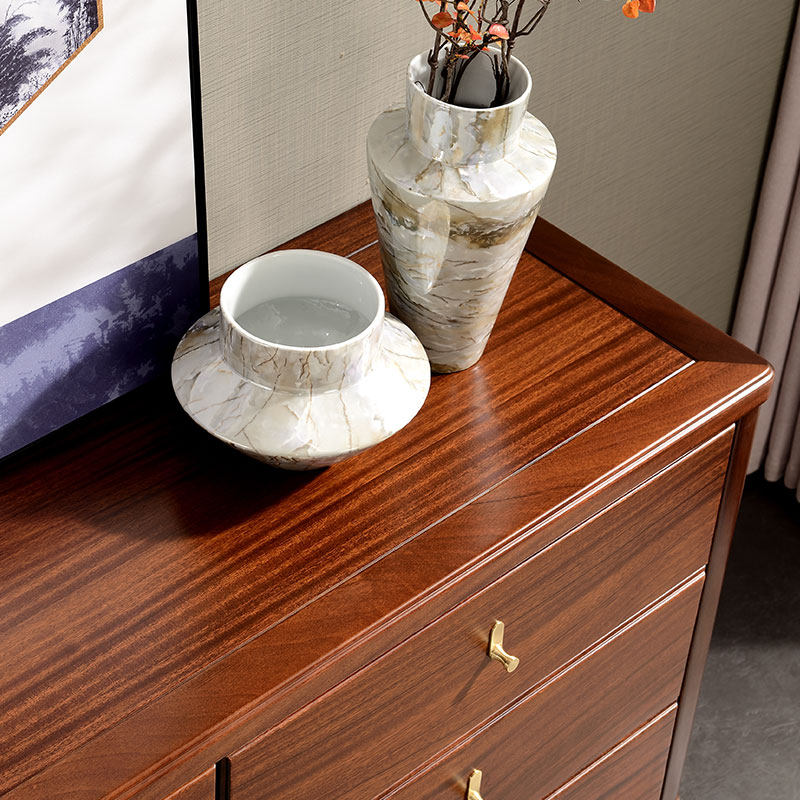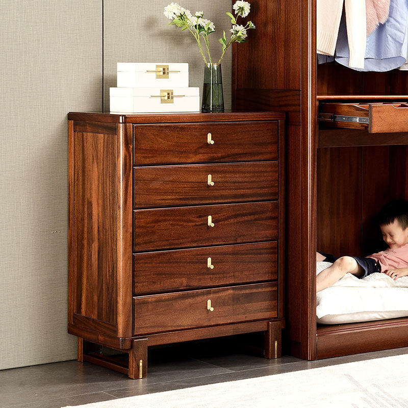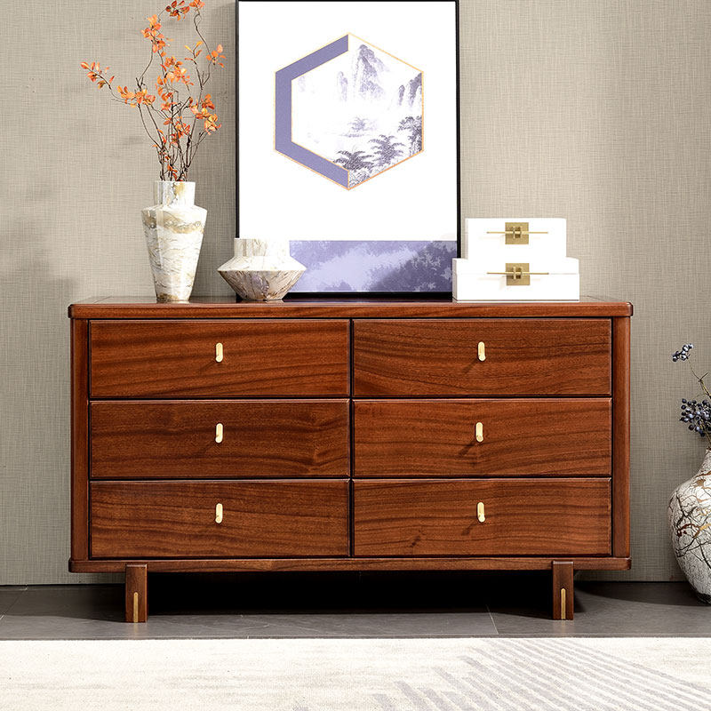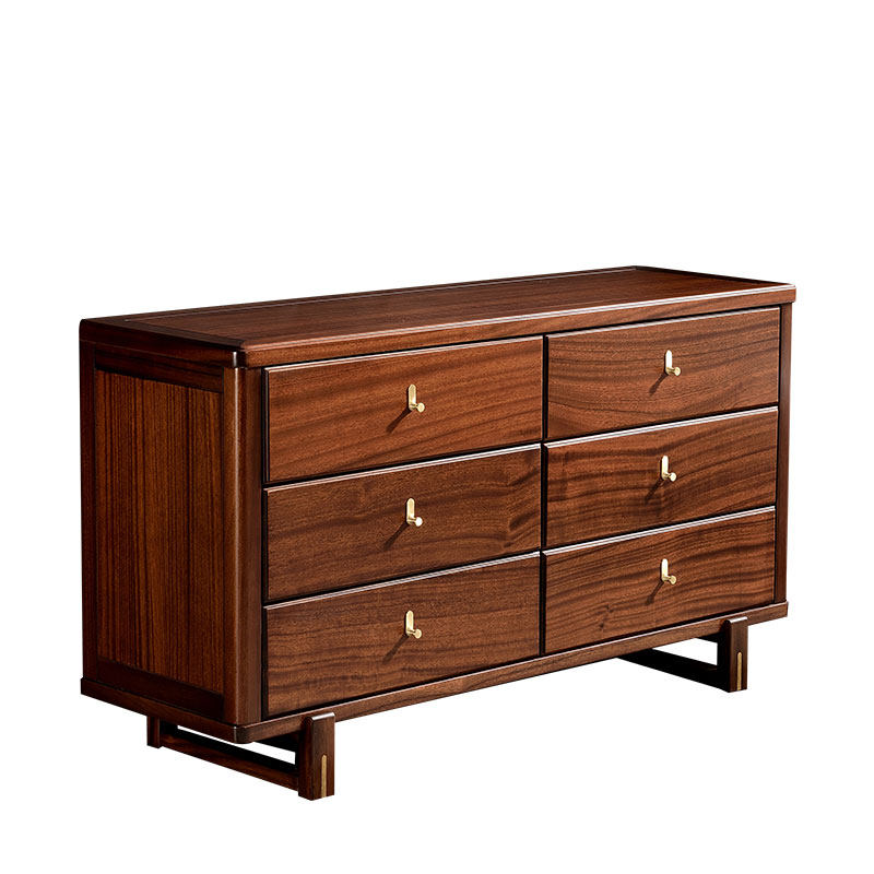 All solid wood six-drawer chest modern Chinese storage drawer cabinet walnut wood home bedroom furniture storage cabinet five-drawer chest