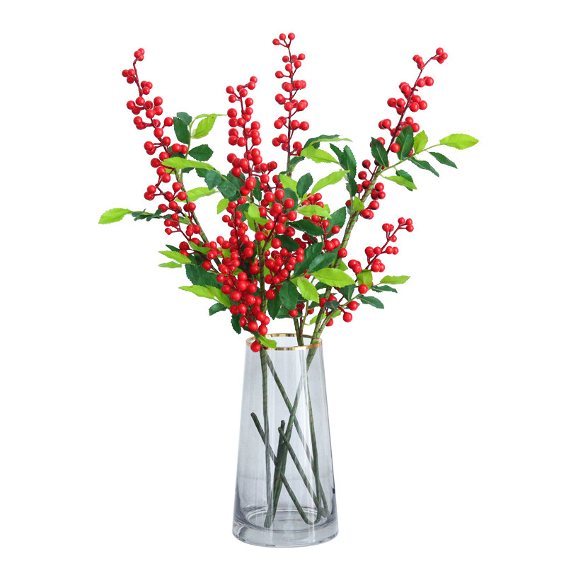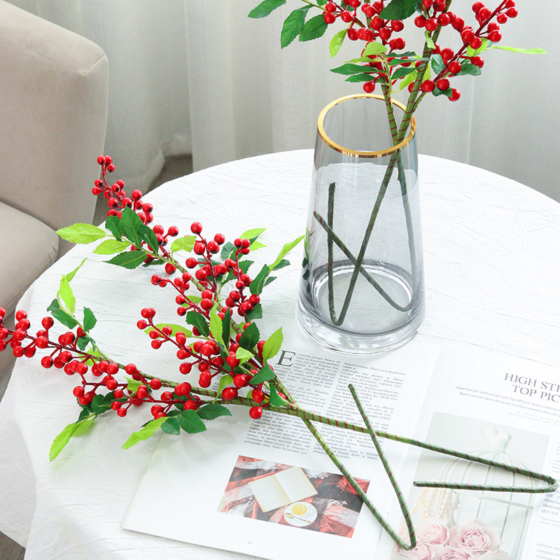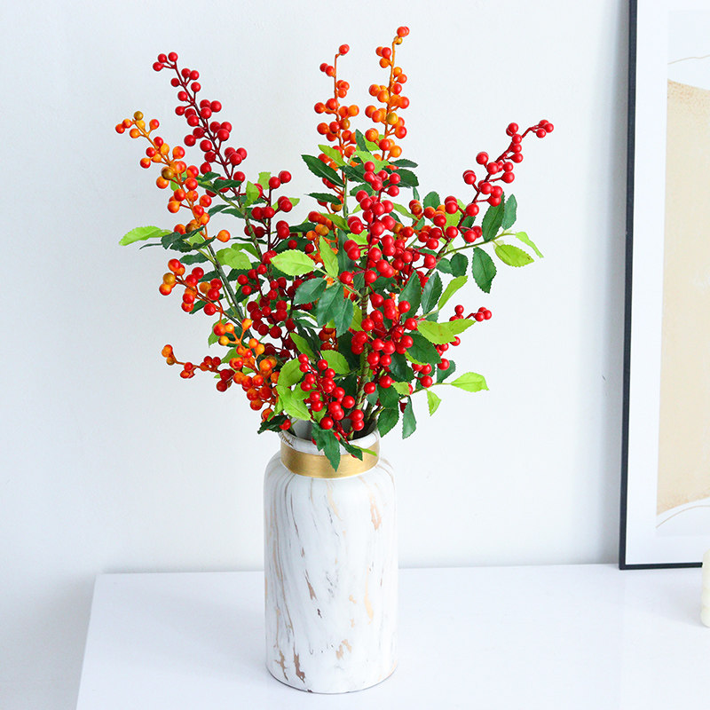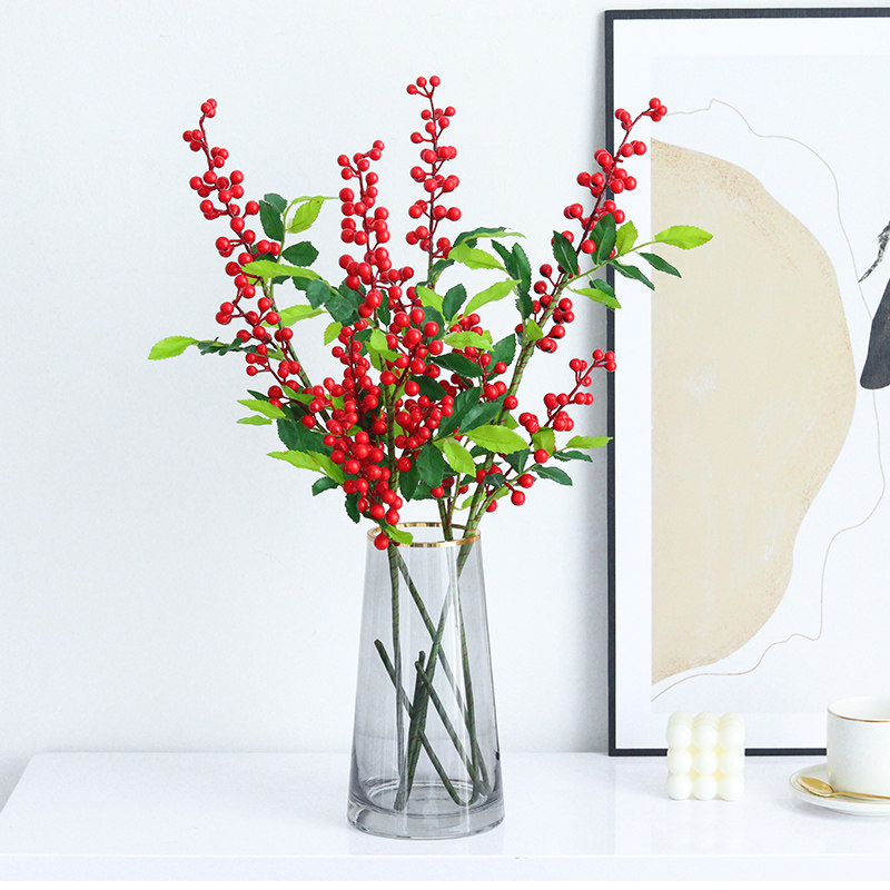 Nordic Light Extravaganza Flowers Art Pendulum Pieces Berries Simulation Flower Living Room TV Cabinet Glass Bottle Decorated Flower Arrangement Furnishing