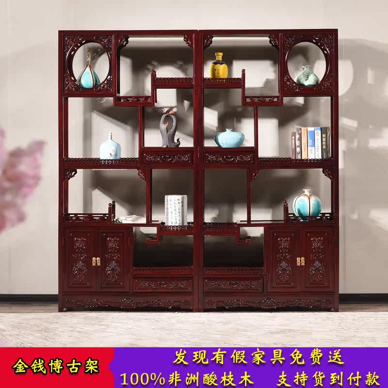 Redwood Bogu rack African sour branch wood compartment rack all solid wood antique display Duobaoge rack bookcase