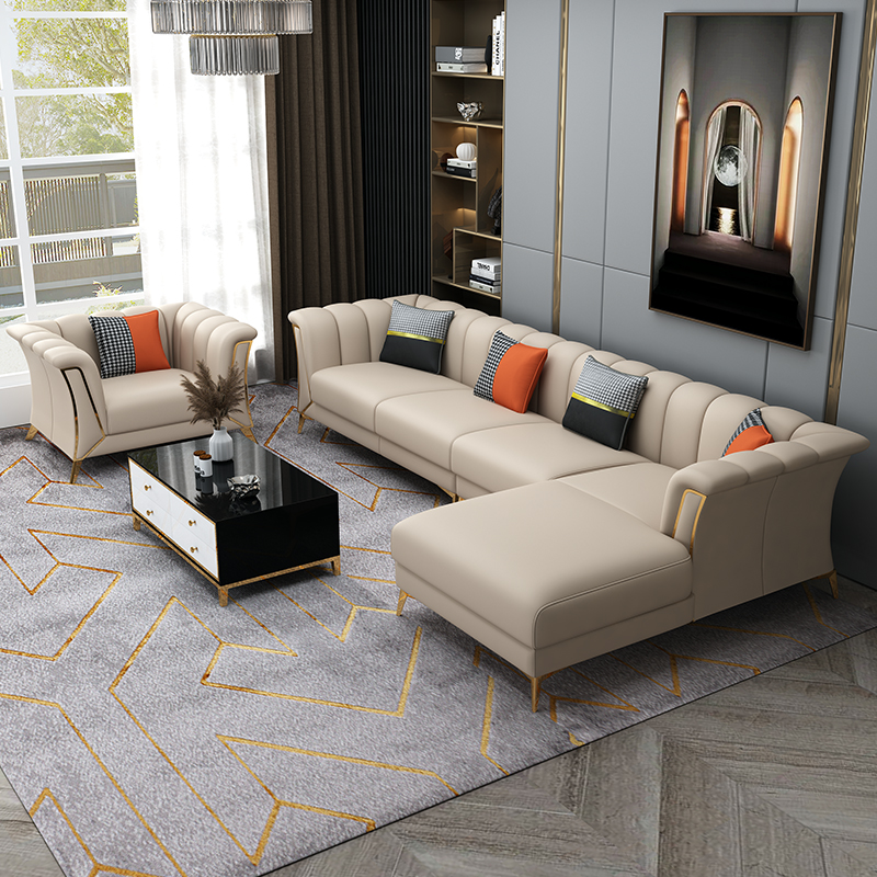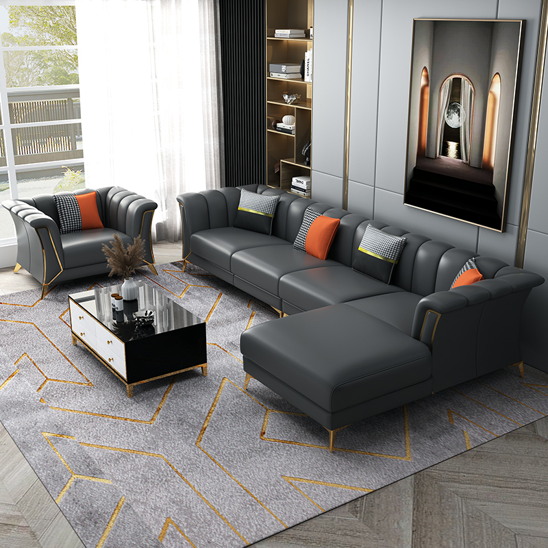 Light luxury leather sofa combination post-modern American Hong Kong-style home living room small apartment simple corner sofa