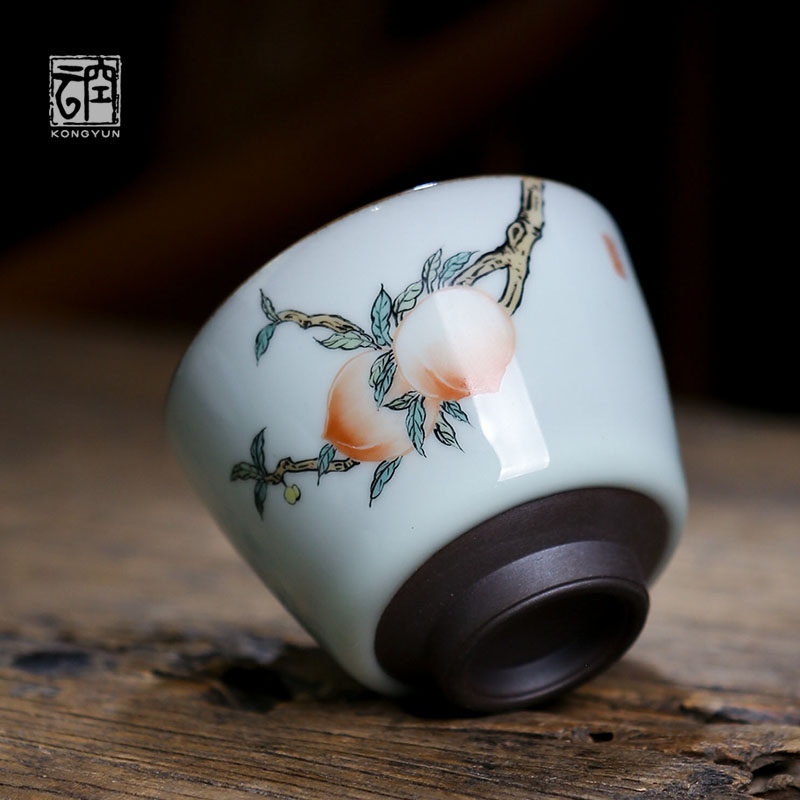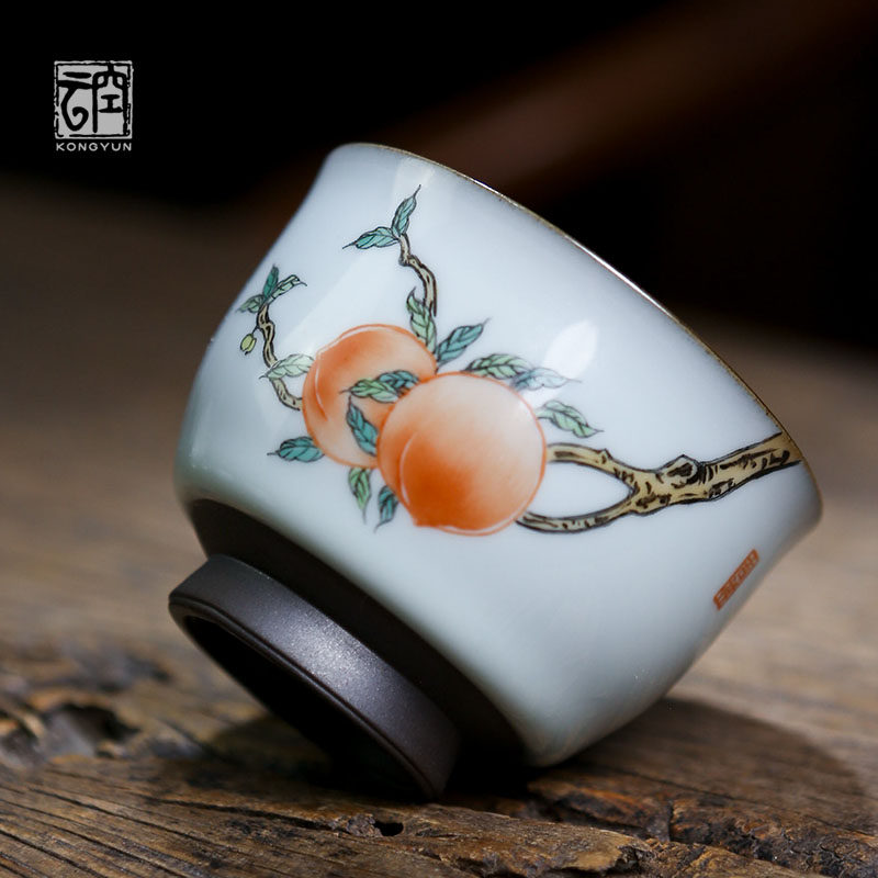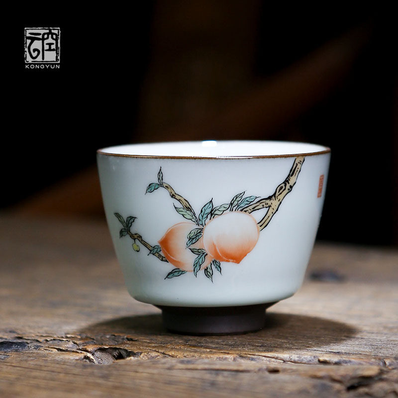 Sky Cloud Jingdezhen Ru Guan Kilo Master's Cup Handpainted Sushi Flowers Birds Women's High-end Enamel Color Single Tea Cup Can Be Raised