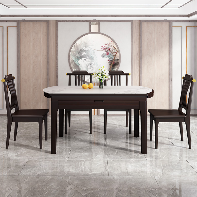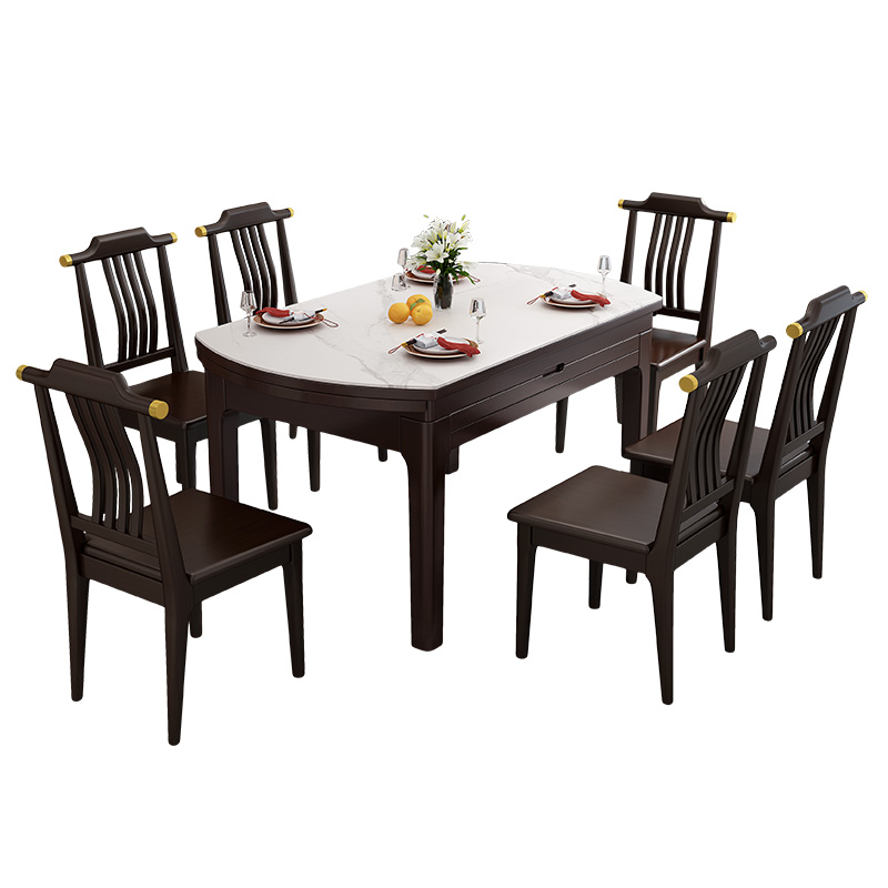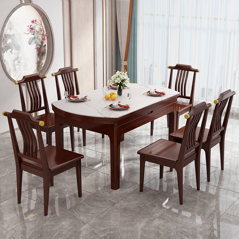 Slate dining table retractable and foldable New Chinese light luxury solid wood dining table and chair combination household small apartment round table