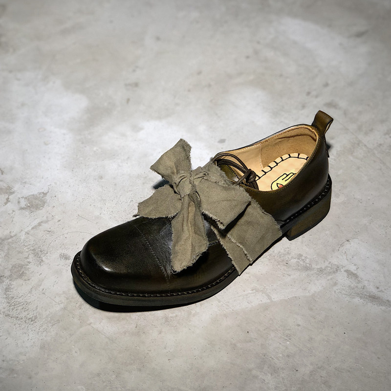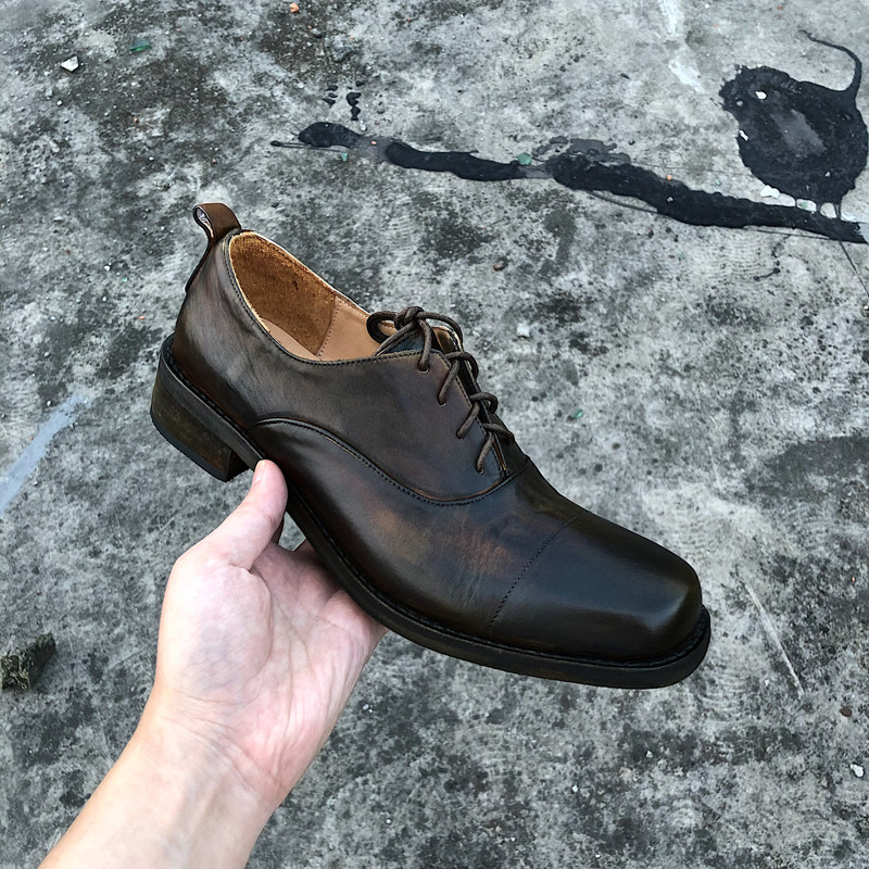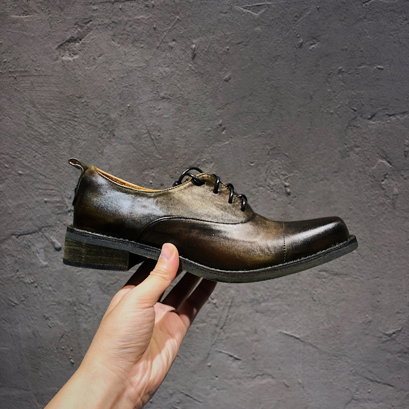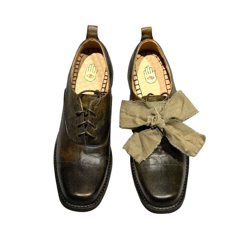 Ding Yin Studio) niche original designer British yuppie retro square toe low-heeled shoes handmade women's shoes