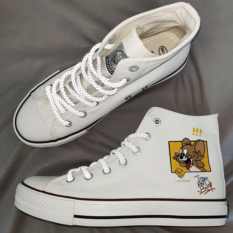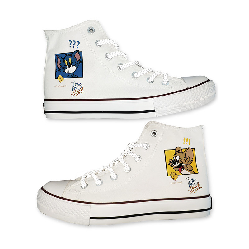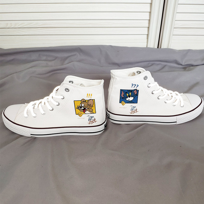 Huli cat and rat explode couple couple high-tube canvas shoes owco cherry blossom tea peach cooked man