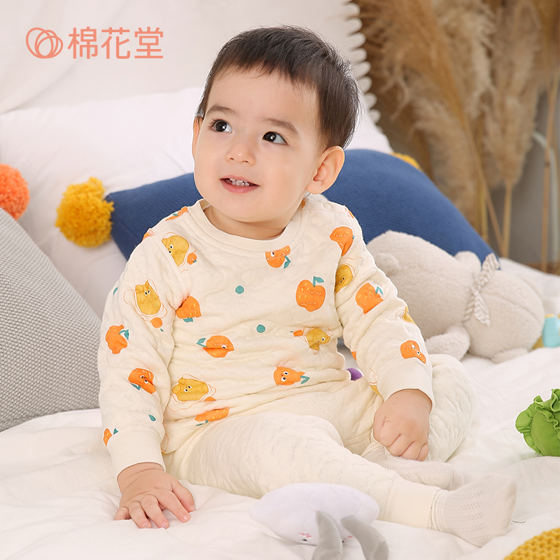 Cotton Hall Air Layer Round Collar Suit Children Underwear Sets Pure Cotton Autumn Clothes Suit Autumn Clothes Sanitary Pants Baby Sleepwear