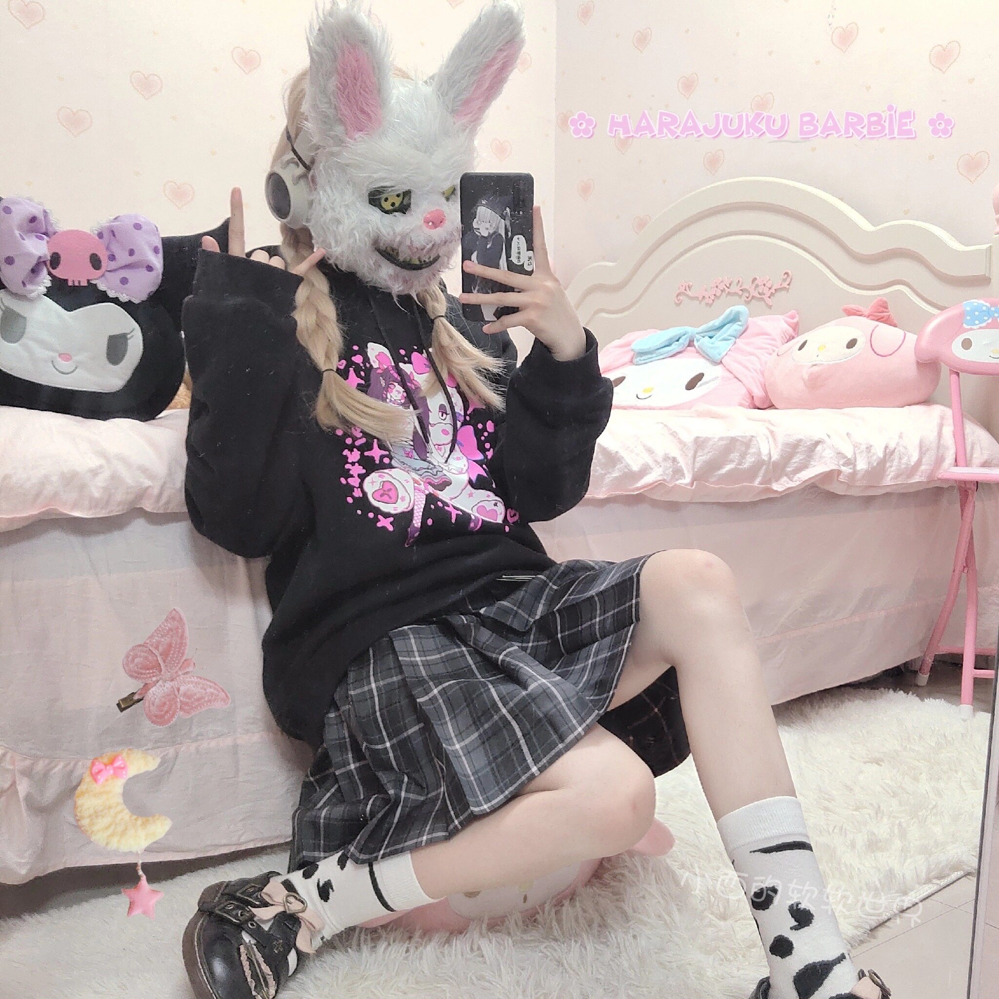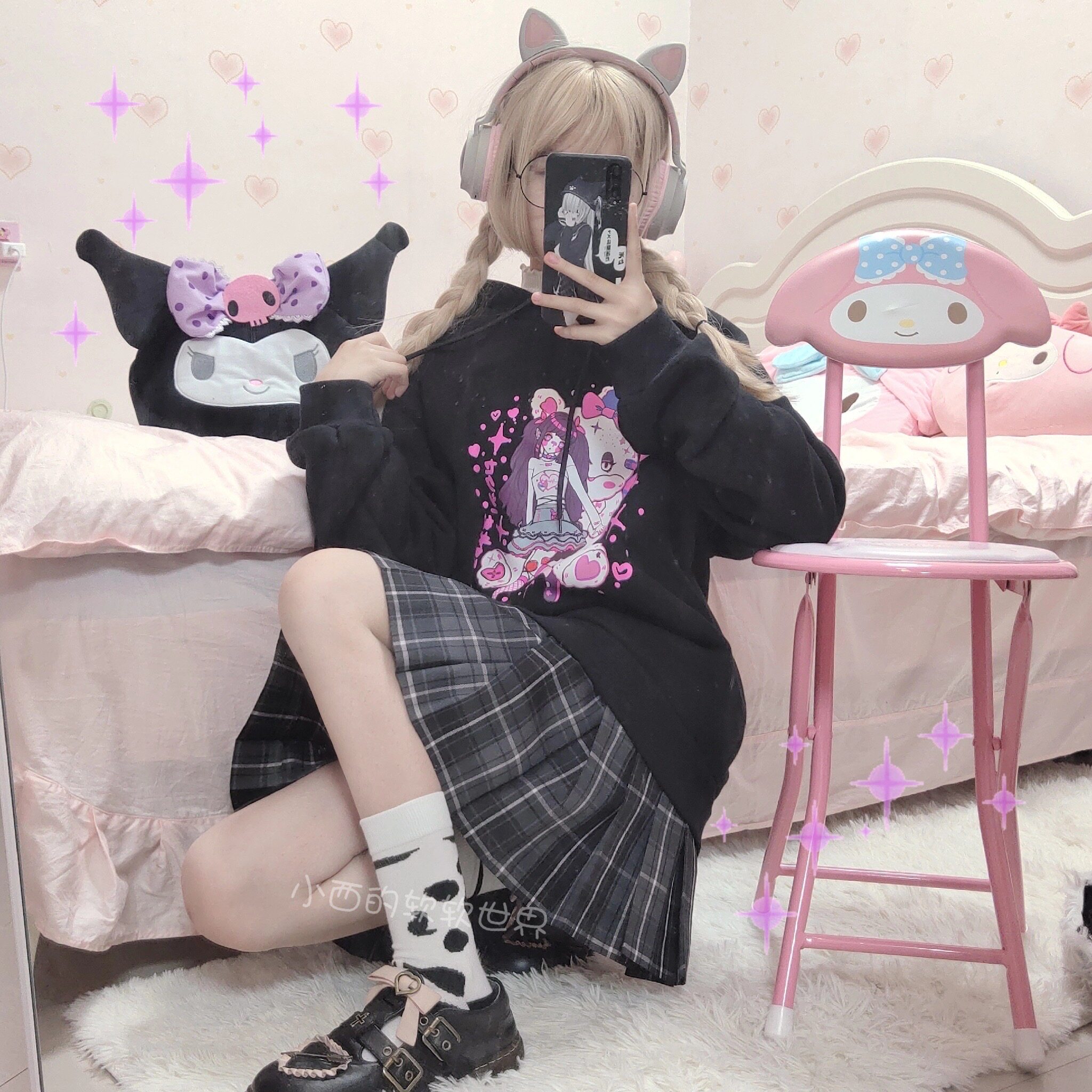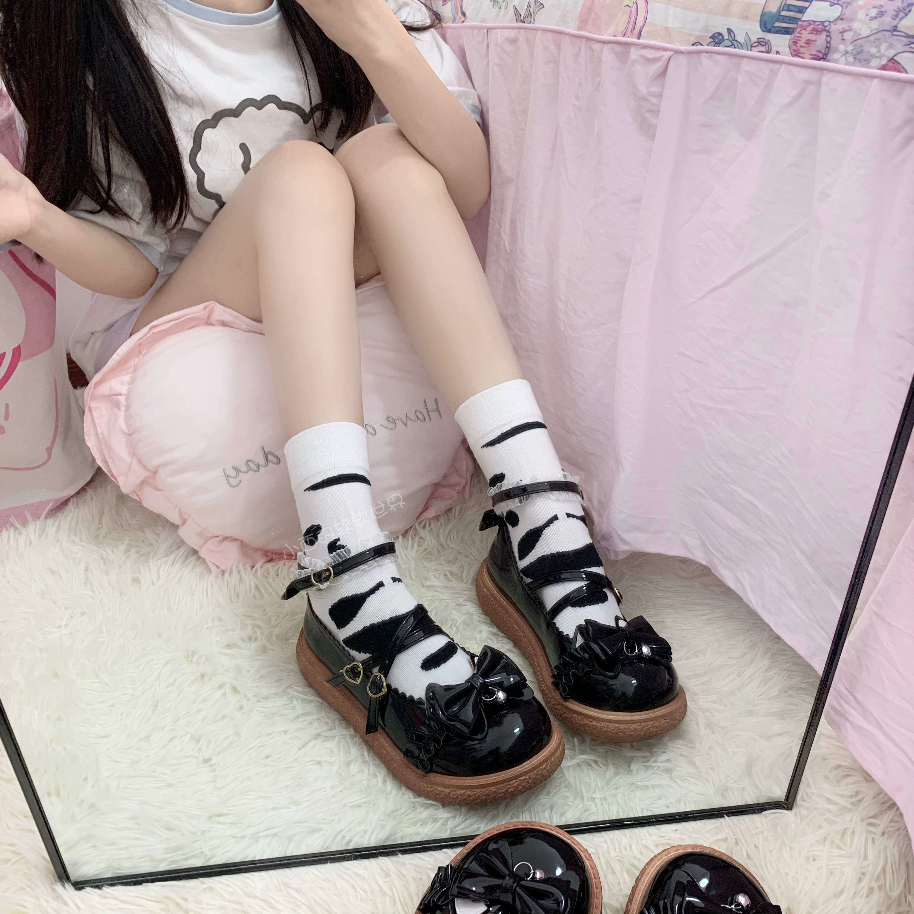 Xiaonishi's soft world Japanese black and white pattern milk classic cute student Harajuku all-match mid-tube socks