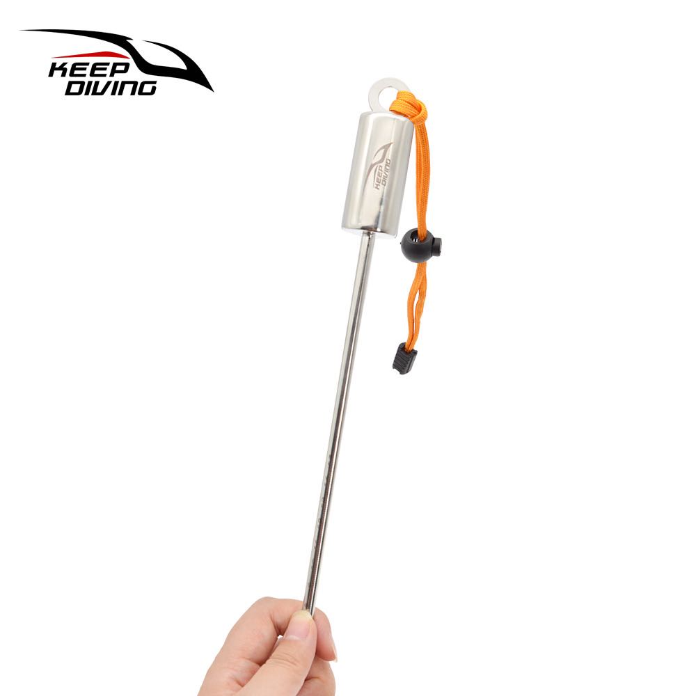 Diving Rattle Jingle Rod 316 Stainless Steel Bottle Knocker Underwater Probe Stick with Scale Self-Ringing Portable Delivery Rope