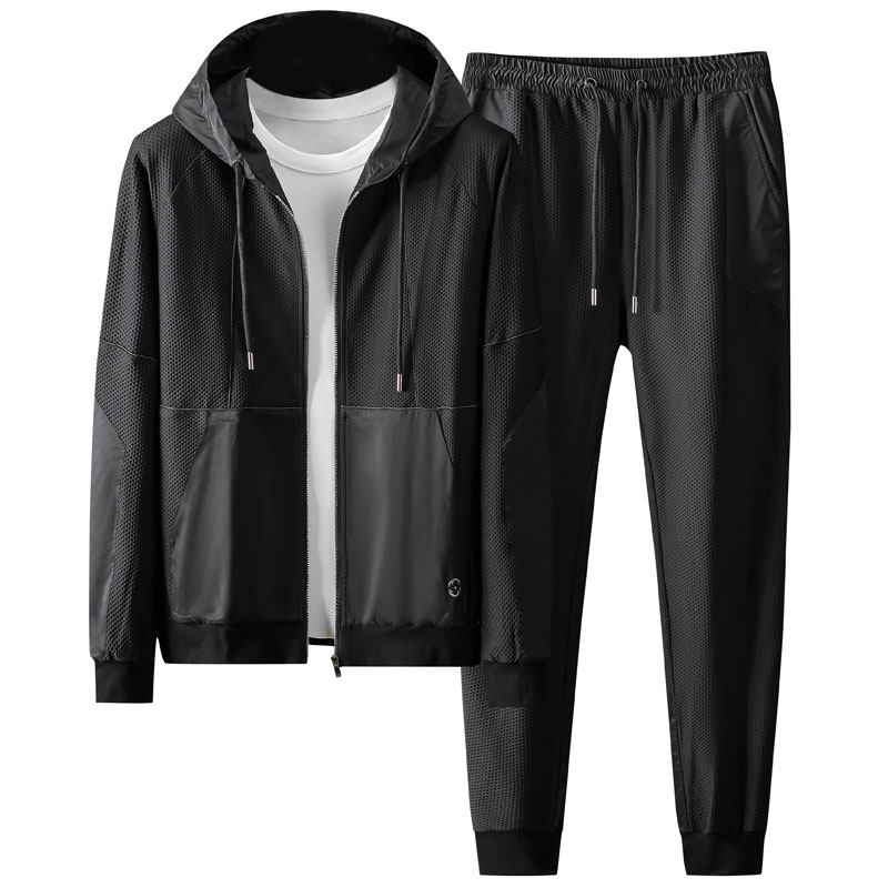 20 Spring Autumn New High-end Sports Casual Suit Men's Cellular Mesh Elastic repair with cap fashion Two sets