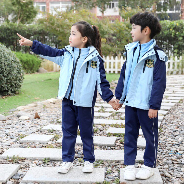 Kindergarten school uniform first grade primary school uniform spring autumn winter children's class uniform jacket plus velvet thick three-piece suit
