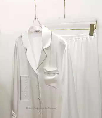 Customized 30MB 100% mulberry silk white long sleeve set Silk women's pajamas high end home wear