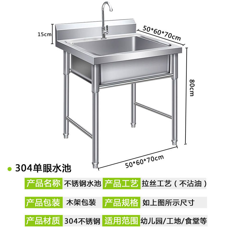 304 stainless steel sink custom-made washbasin bowl canteen hotel kitchen deepened extra thick with platform rack single and double pool