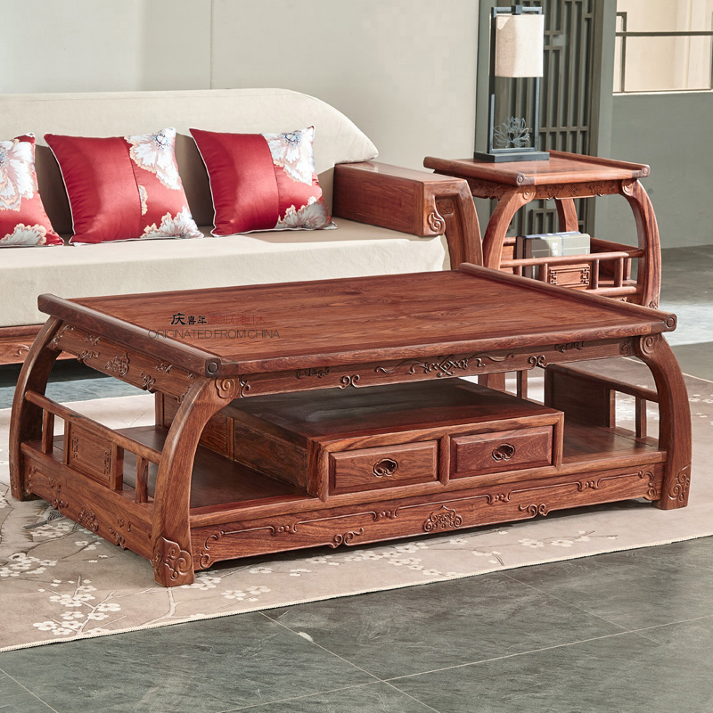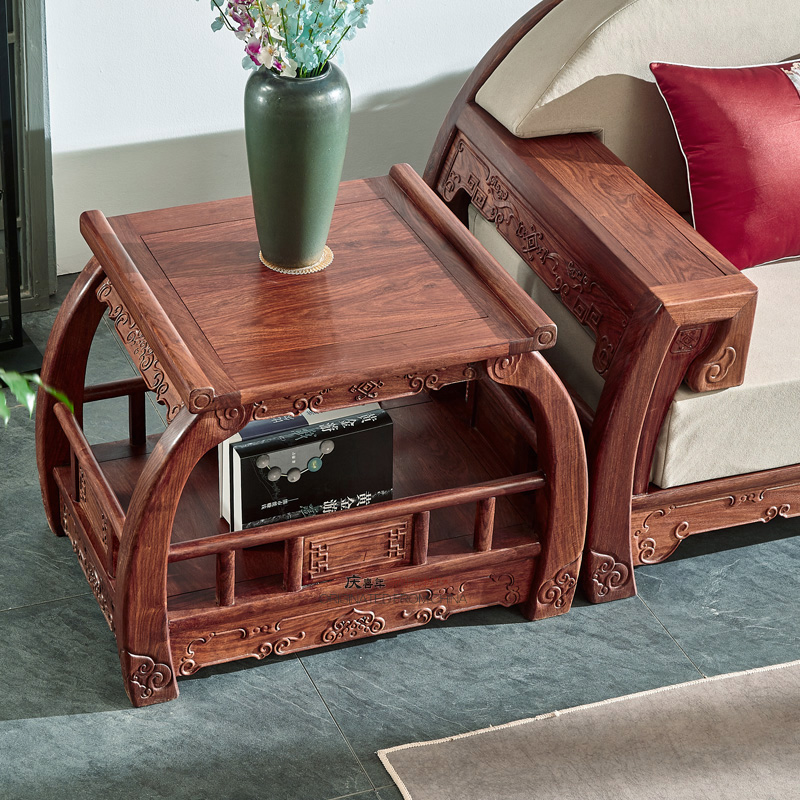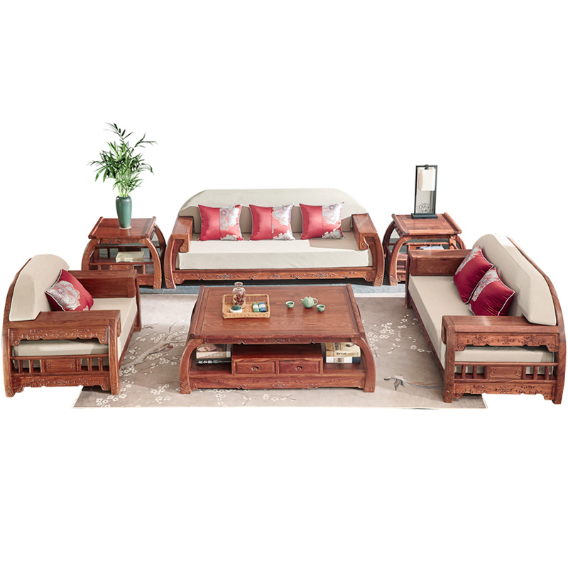 New Chinese style mahogany sofa Chinese style log hedgehog red sandalwood modern living room curved sofa chair combination all solid wood