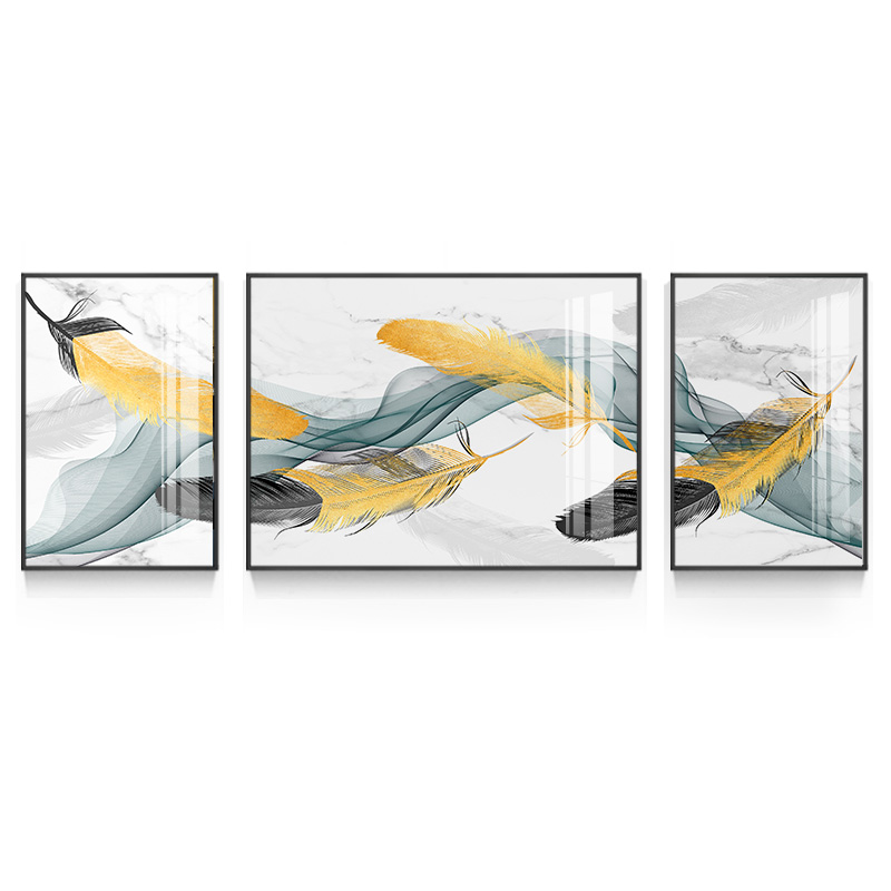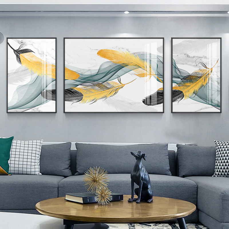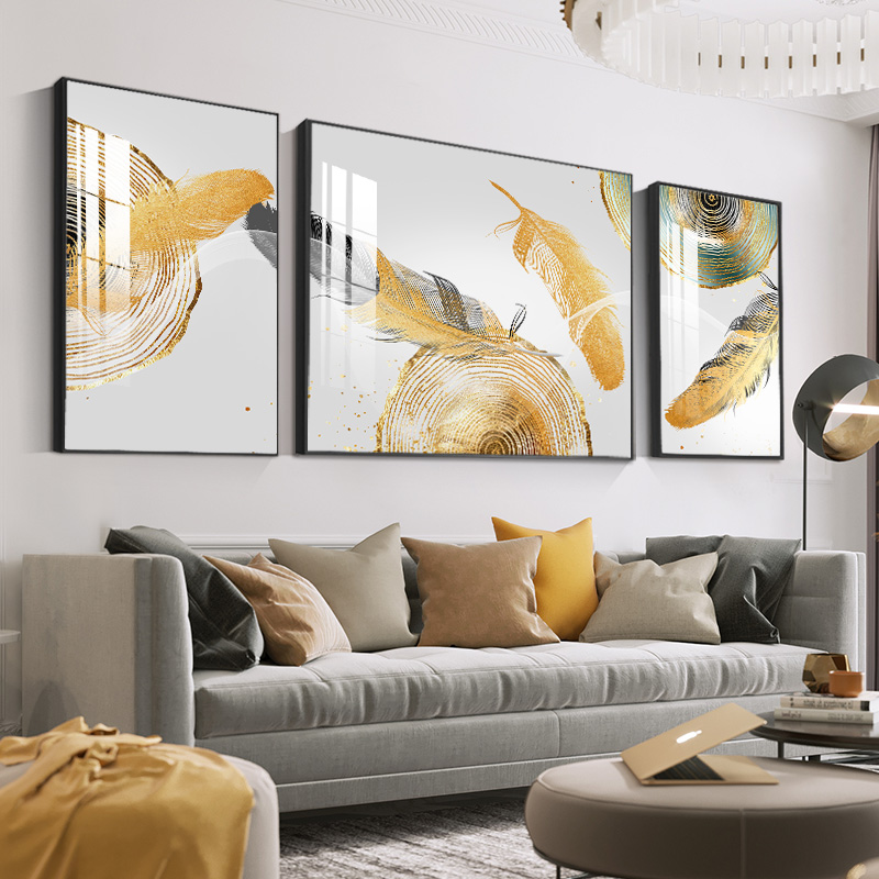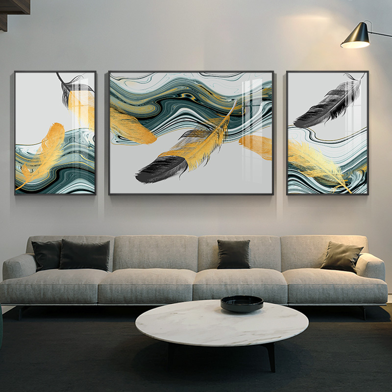 Living Room Decoration Painting Triptych Modern Brief Nordic Sofa Background Wall Hanging Paintings Abstract Feather Light Lavish Mural Painting