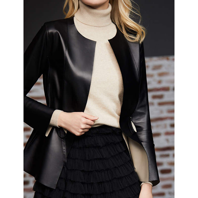 U N Q method elegant high order light lavish and soft without coating sheep leather loose round collar genuine leather fur coat