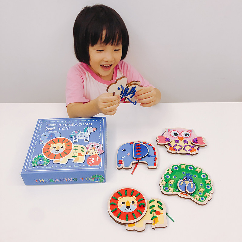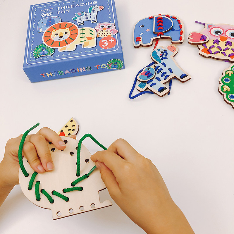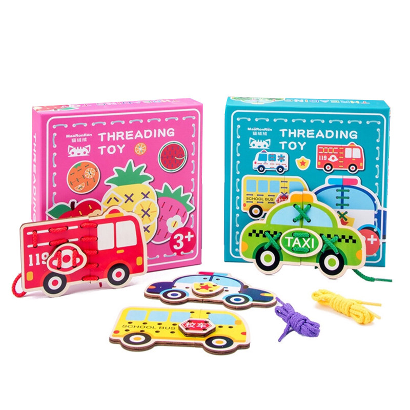 Kindergarten wooden animal transportation rope threading board concentration training hand fine movement educational toy