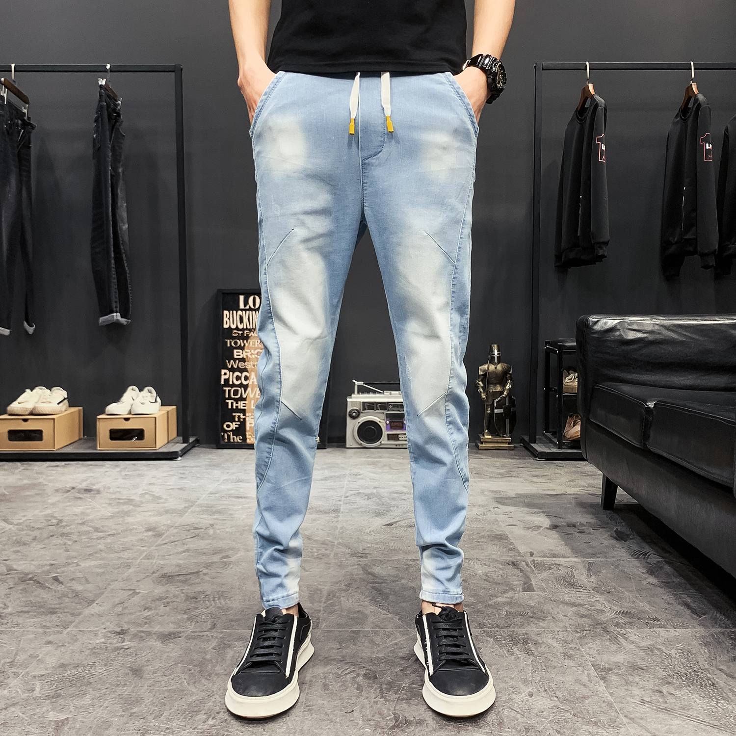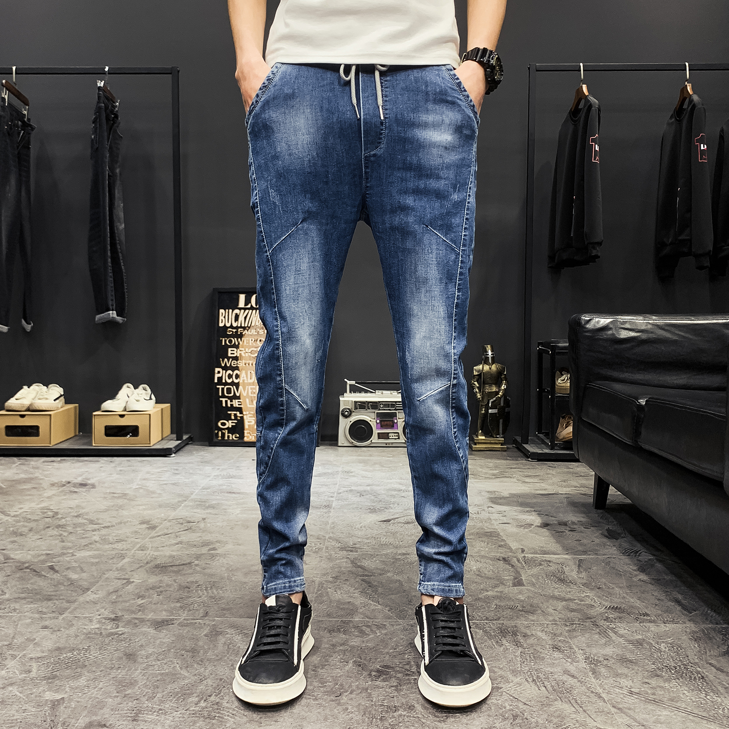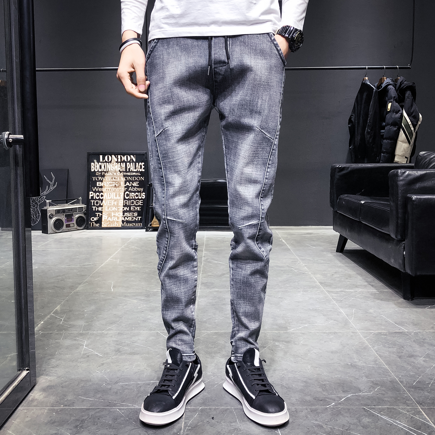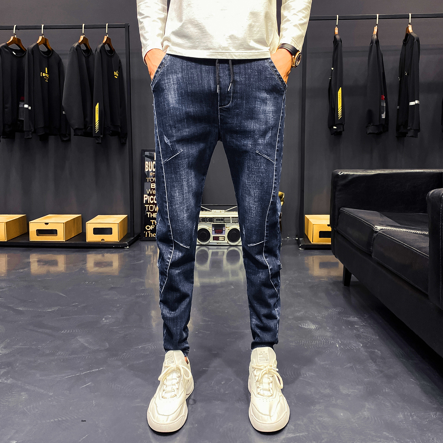 Tide brand jeans men's loose straight small feet stitching Korean version trend spring and autumn casual black men's jeans