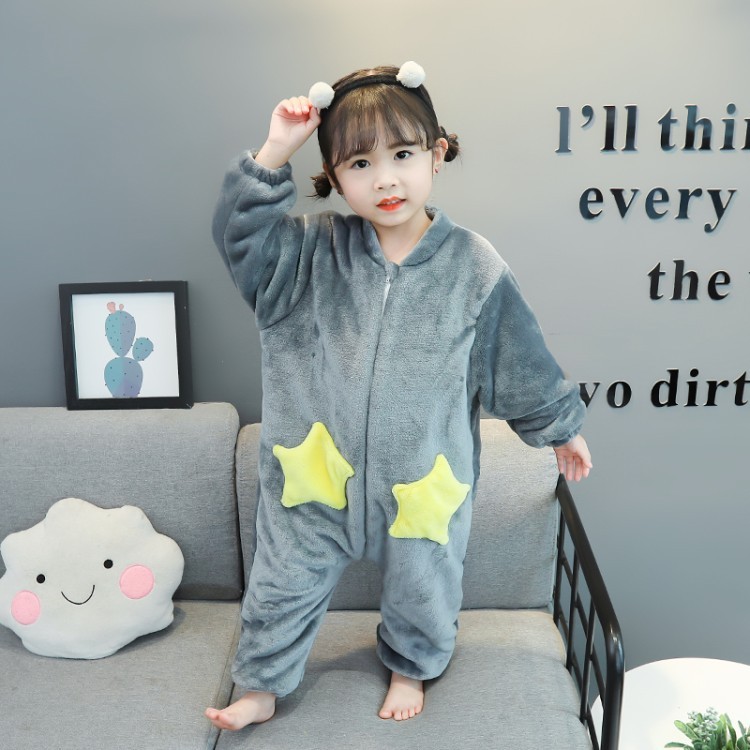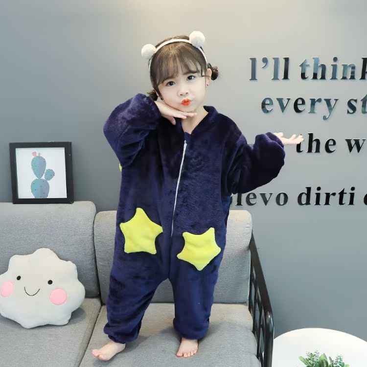 Baby boy's sleepwear, autumn and winter ladies' flannel flannel khaclothes climbing suit women's thickened anti-kicks are taken by the family