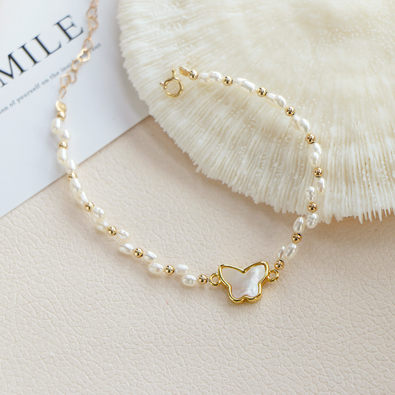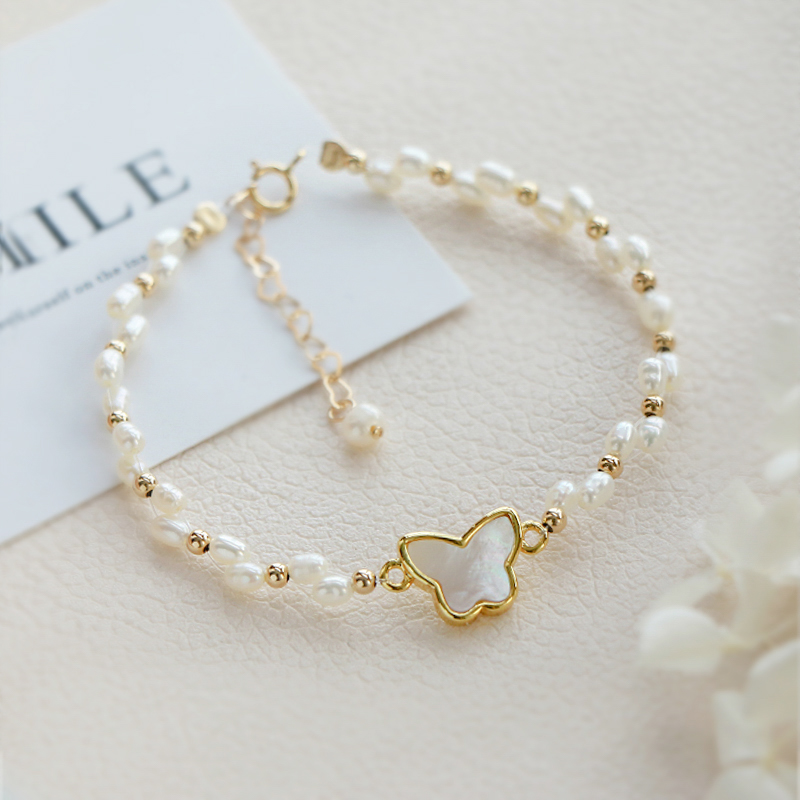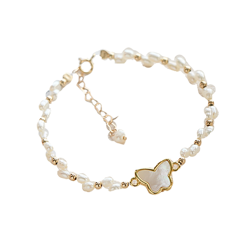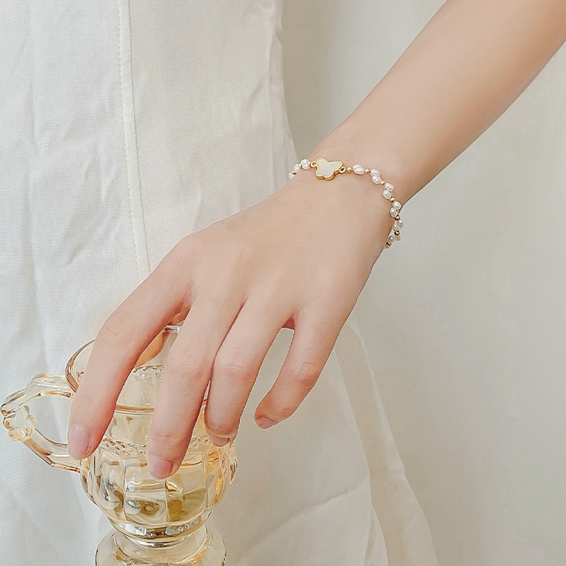 Natural freshwater floral pearl butterfly handmade female minimalist temperament delicate hand ring retro superfairy net red bestie