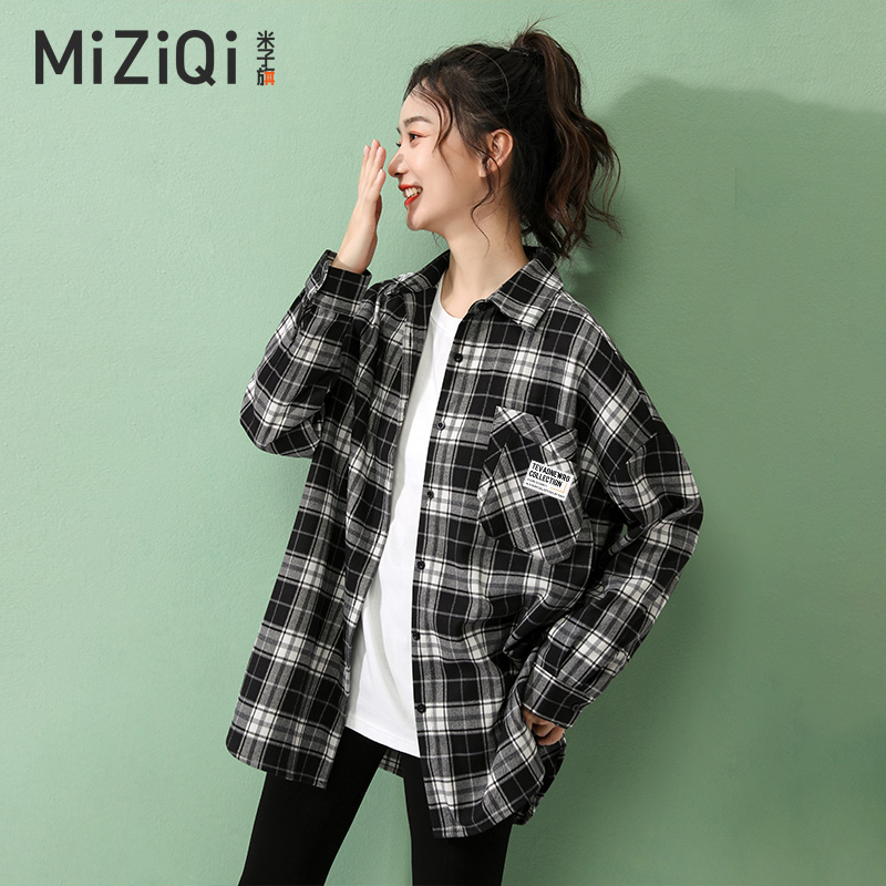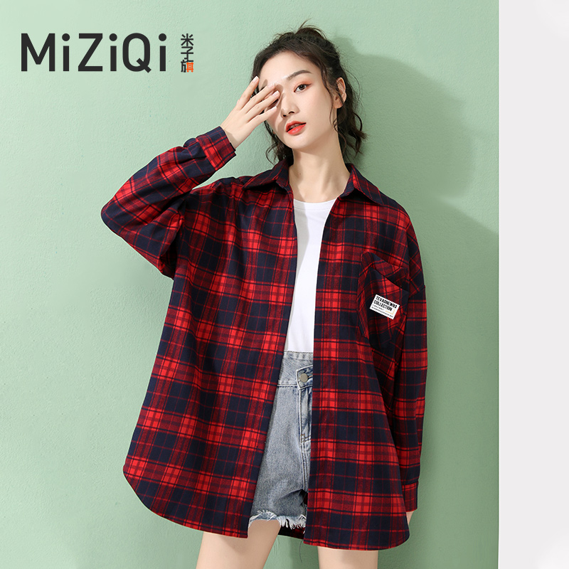 Miko Flag Plaid Shirt Woman Design Sensation Little Crowdsourced 2022 Spring Autumn New Vintage Port Taste Blouse Jacket Ins Tide