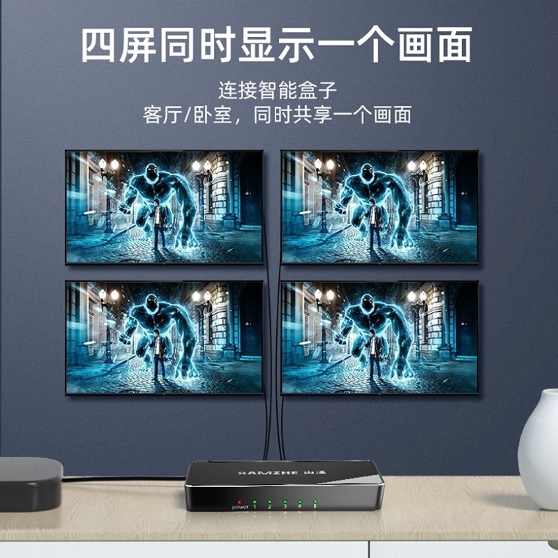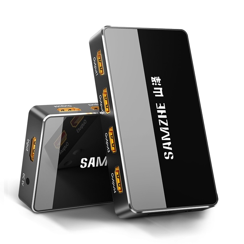Yamazawa HDMI2.0 Distributor 4K HD One In Four Out Set-Top Box Computer TV Display Projector Audio and Video Synchronous Remote Control Switching Conversion Splitter 1 in 4 Out