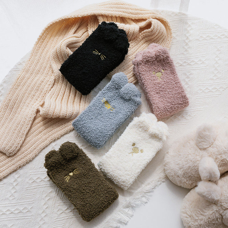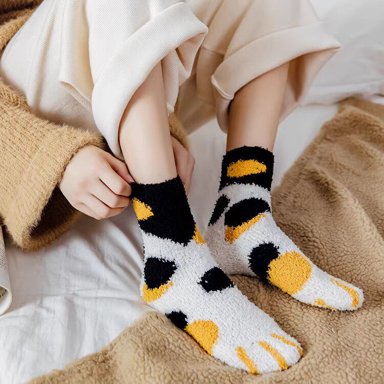 Clear Cabin ~ Coral Suede Socks Woman Midbarrel Socks Floor Cute Warm Moon Socks Home Sleep Socks-Taobao