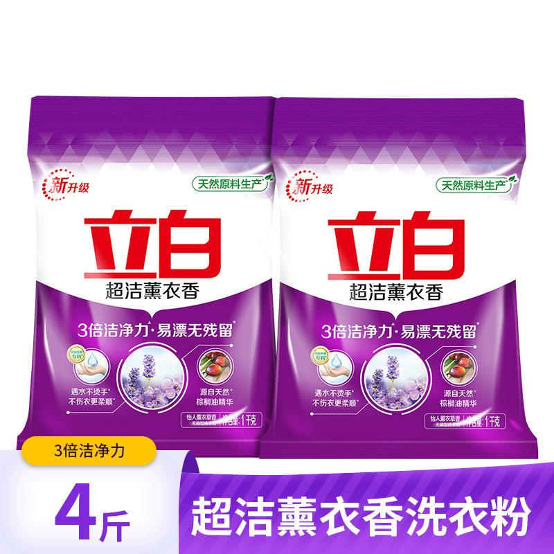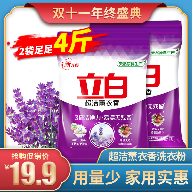 Stand white ultra-clean lavender washing powder 1kg * 2 bags persistent fragrant family affordable clothing easy to rinse and remove the peculiar smell