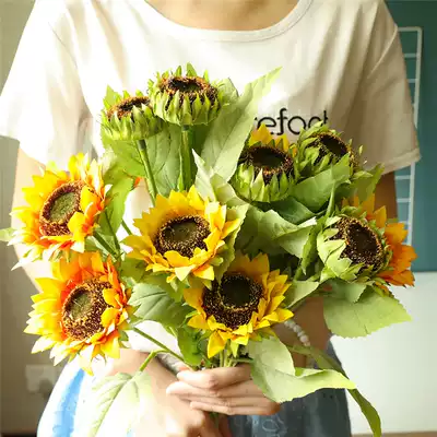 3 head simulation sunflower fake flower bouquet living room home pastoral style decoration flower decoration Plastic flower floral decoration
