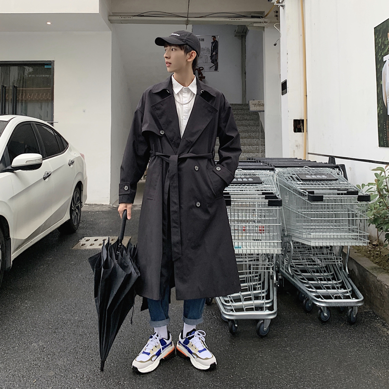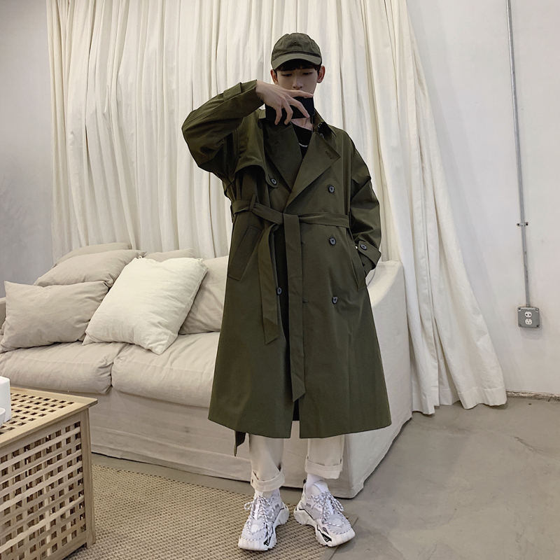 2022 Spring and Autumn Medium Long Trench coat men handsome loose tide brand coat Hong Kong style ins tide versatile casual coat