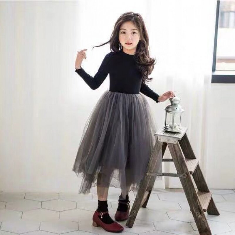 Girls dress 2019 autumn and winter new Korean version of children's puff skirt medium and large children's clothes foreign air princess long dress