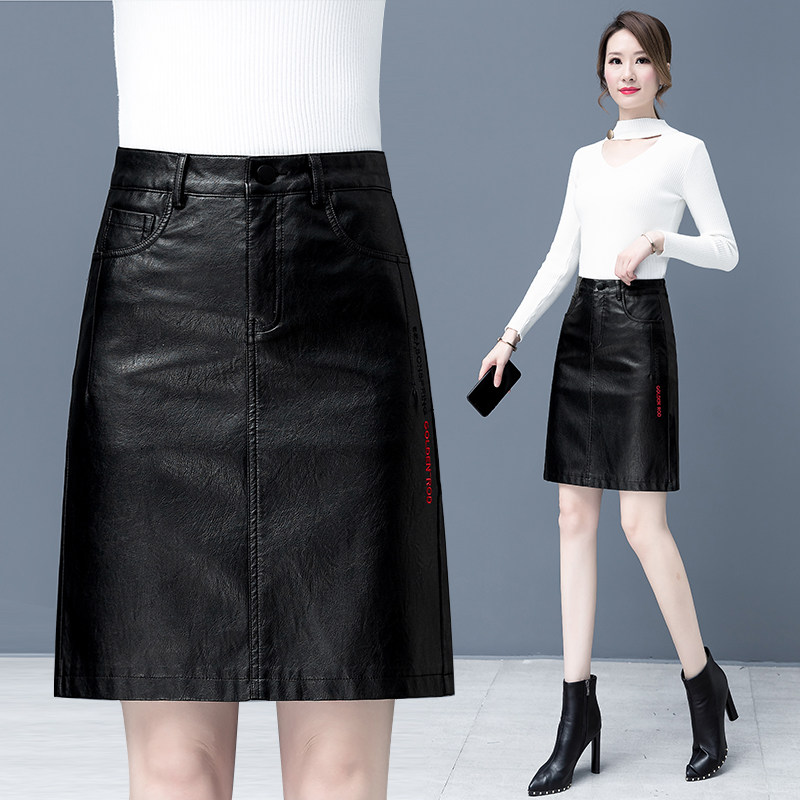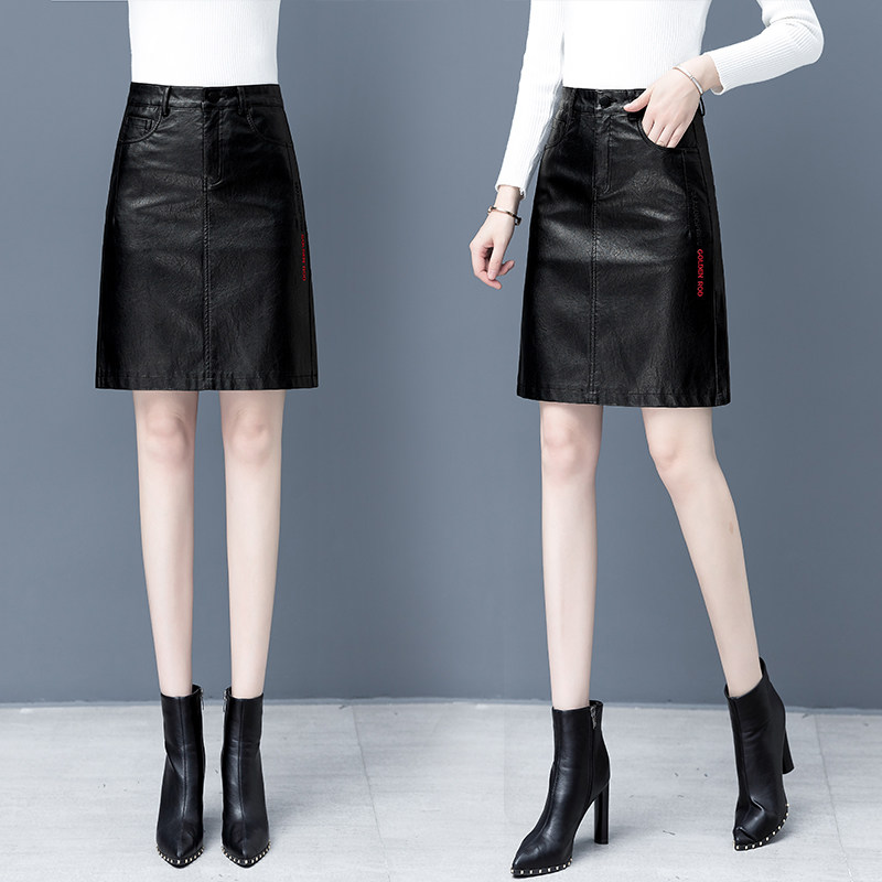 pu small leather skirt women's skirt autumn and winter 2022 new high-waisted thin a-word fashion one-step mid-length hip skirt