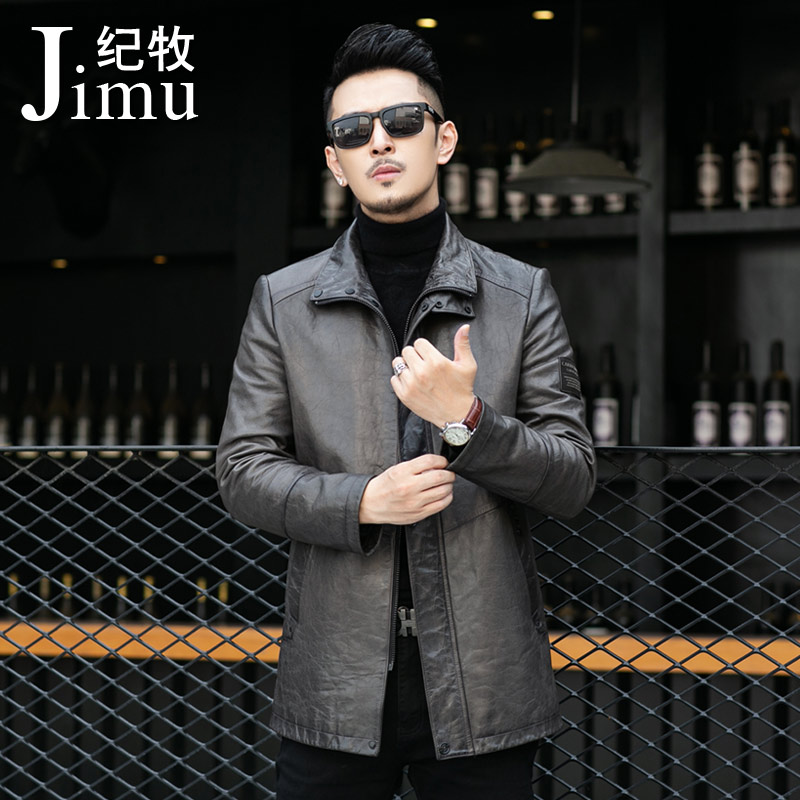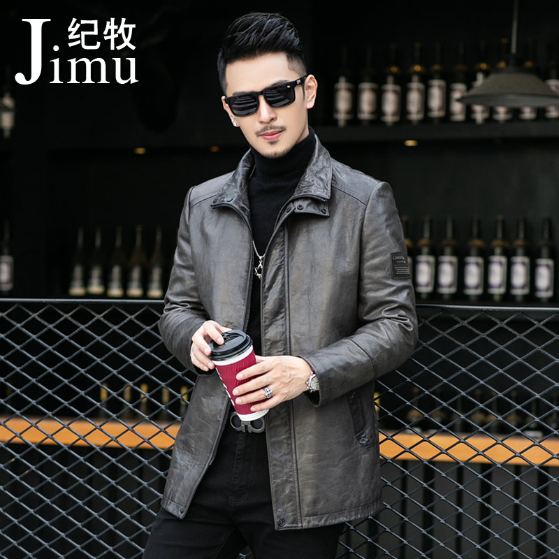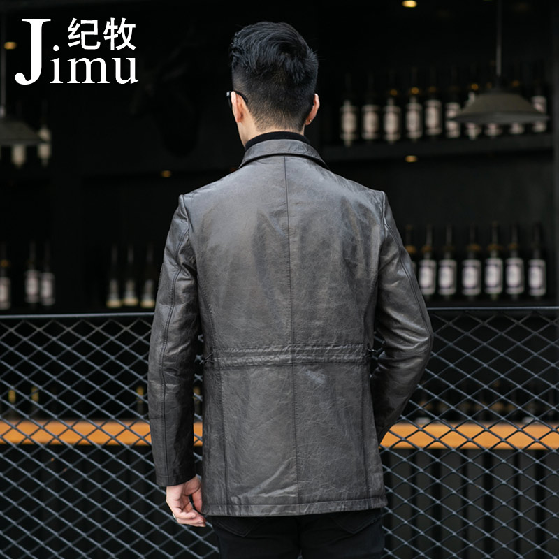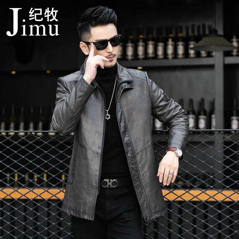 Leather leather jacket men's mid-length trench coat oil wax sheepskin youth handsome trend coat autumn winter leather jacket jacket