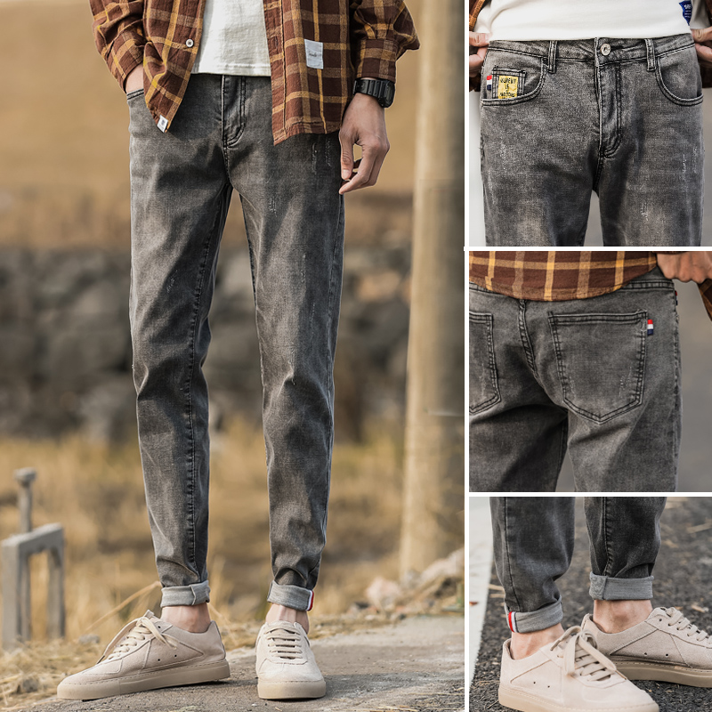 Jeans Men's Casual 2021 Spring /Autumn Winter Tide Brand Workwear Korean Trend Plus Velvet Slim Slim Small Foot Long Pants