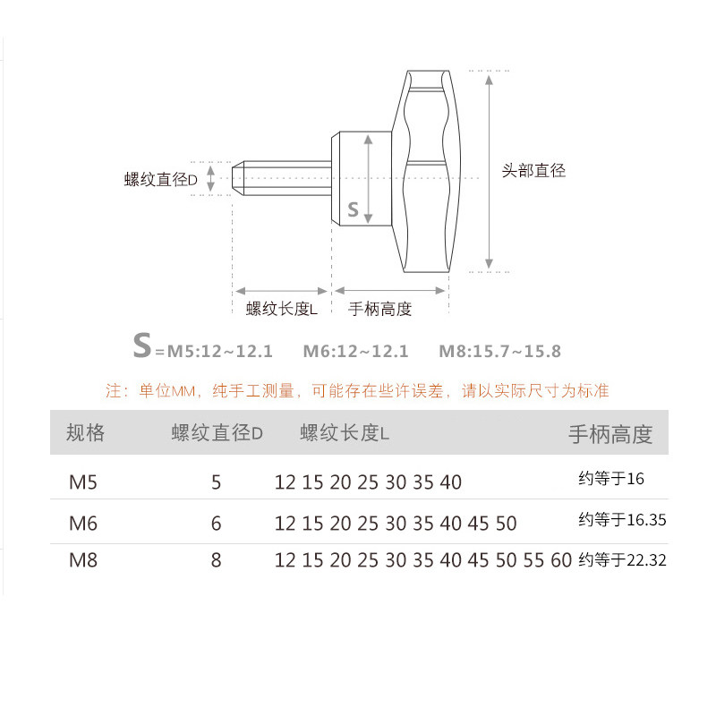 Carbon Steel Triangle Head Hand Screwing Screw Handle Screw Plastic Arc Hand Twist Screws Glued Wood Knob Handle Bolt M5