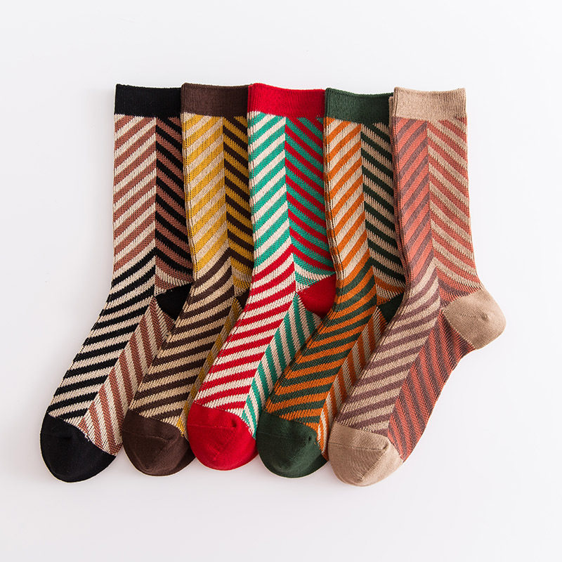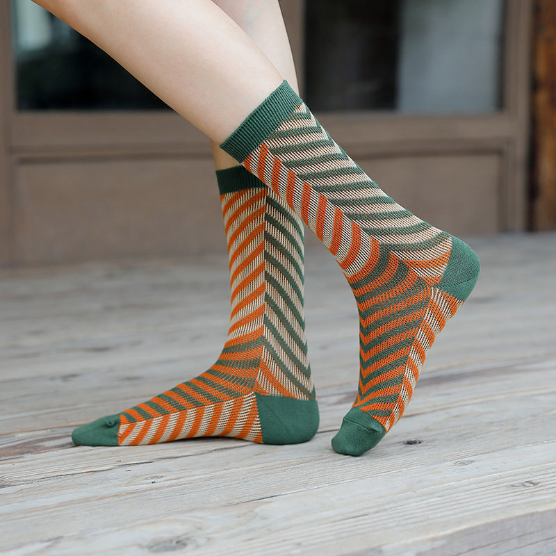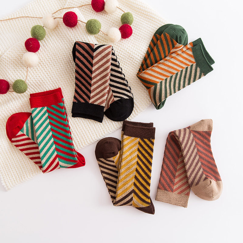 Autumn Winter New Products High-end Socks Female Socks Pair of Double Pin Two-Way diagonal Spin Socks Colored Insc Tide Socks