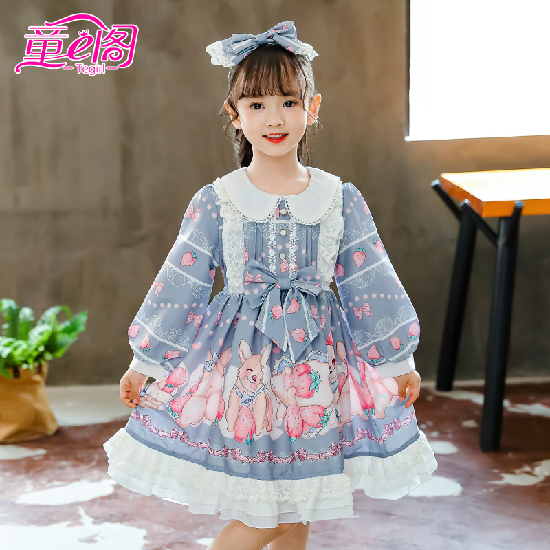 Girl Lolita Princess Skirt Cartoon Print Skirt Fall Lolita Skirt Children's Long Sleeve Little Lori Dress
